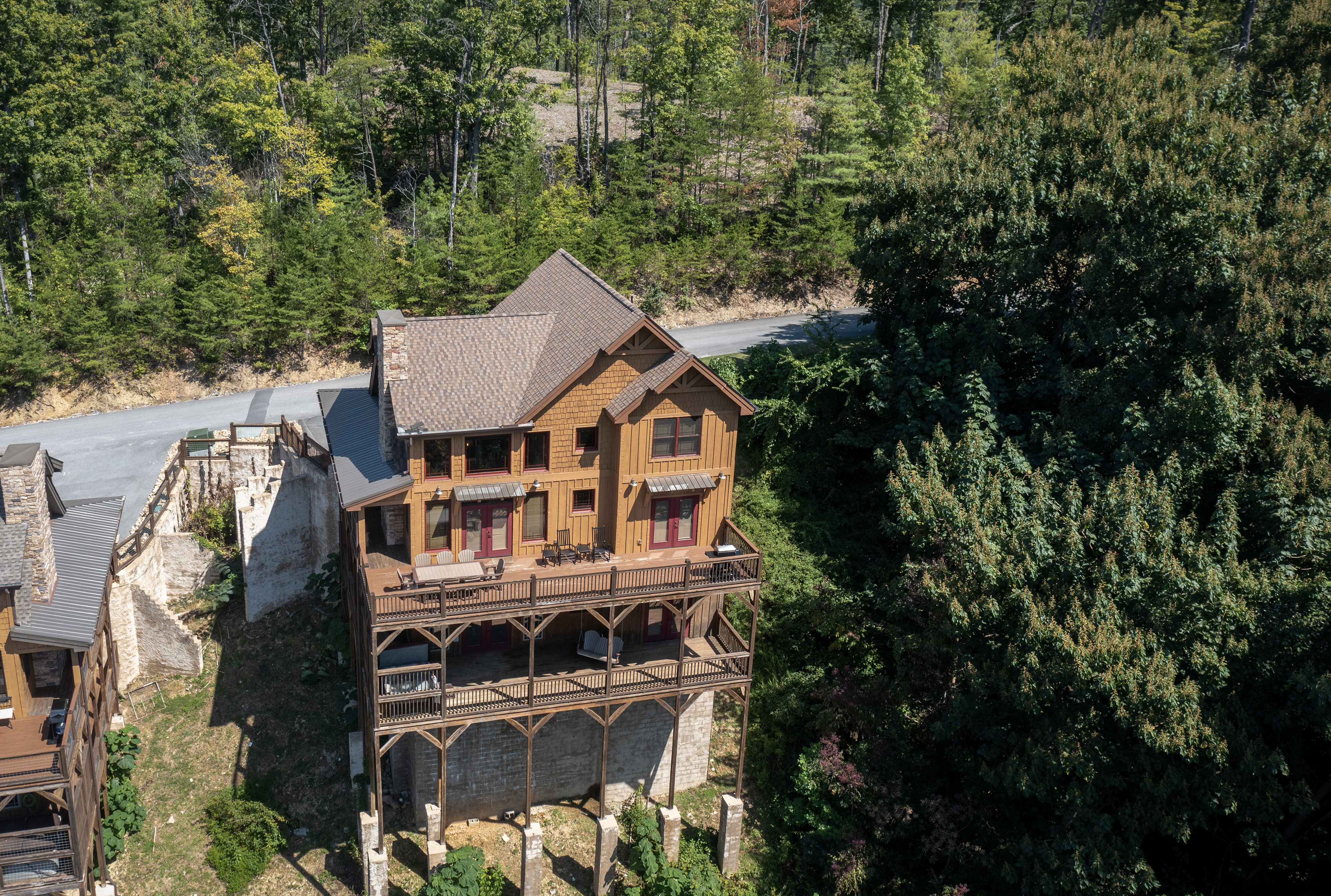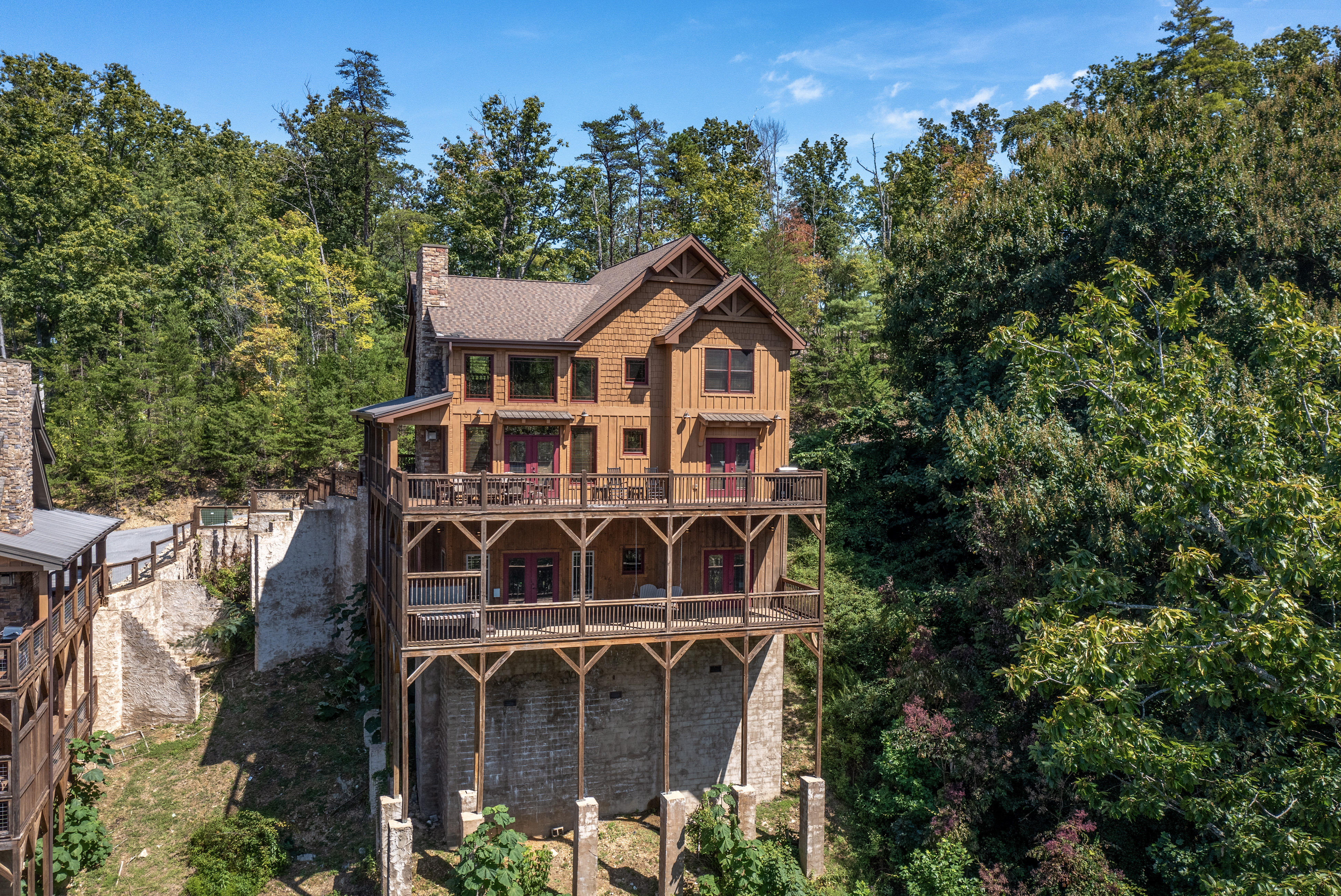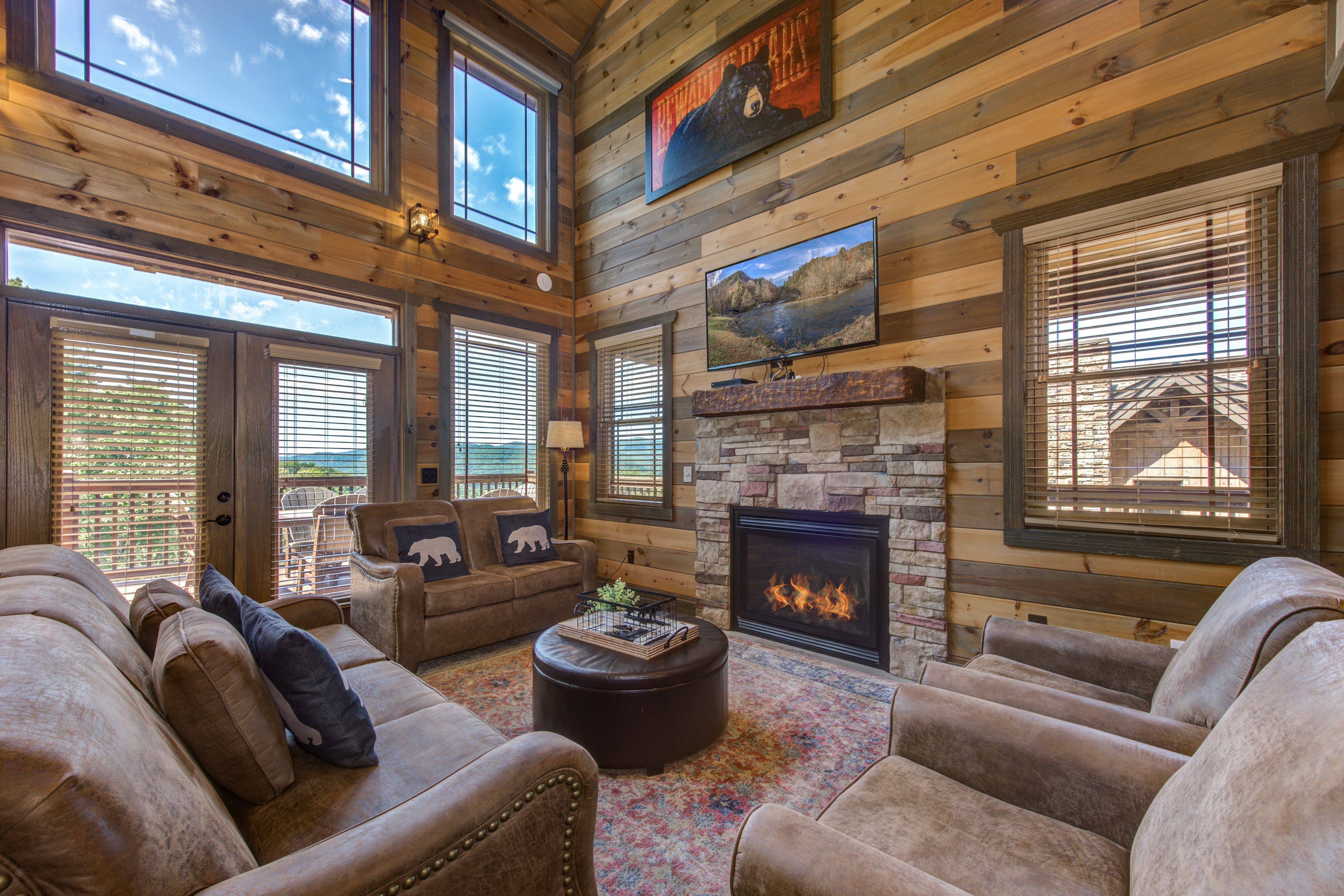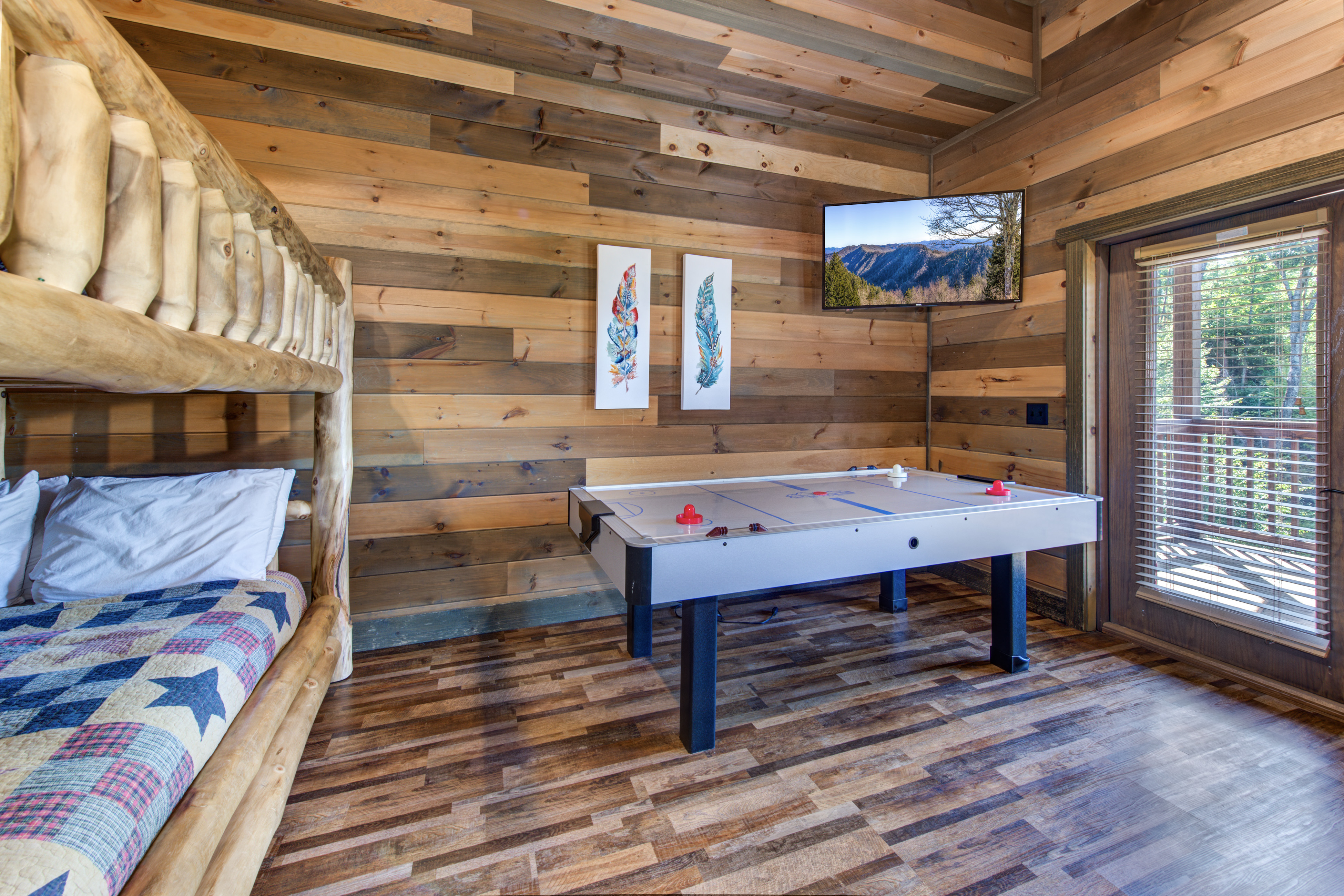 Welcome to Cloud Bound – Your Smoky Mountain Escape Discover a mountain retreat that combines breathtaking views, modern comforts, and endless fun. Cloud Bound is a one-of-a-kind cabin designed for families and friends to create lasting memories in the heart of the Great Smoky Mountains. From sunrise over the peaks to evenings relaxing in the hot tub, every moment here feels magical. The cabin is packed with features to entertain. Guests can splash year-round in the private indoor pool, enjoy movie nights in the theater room, or spend hours playing air hockey and arcade games. Outdoors, the expansive back deck offers beautiful mountain views, a bubbling hot tub, plenty of seating, and a dining table perfect for gathering together. Inside, the cozy living room fireplace adds warmth and charm, while a fully equipped kitchen with updated appliances, granite countertops, and a multi-serve coffee maker makes preparing meals a pleasure. The home also provides two indoor dining tables seating up to twelve, along with an outdoor dining table for six, so there is plenty of room for everyone. Sleeping arrangements are both comfortable and convenient. On the main level, the master bedroom offers a king bed, dresser, closet, TV, and ensuite with a standing shower, while a second bedroom also features a king bed, dresser, closet, TV, and an ensuite with a tub and shower combo. Upstairs, two additional bedrooms each include a king bed, dresser, closet, TV, and ensuite with a standing shower. On the lower level, a spacious bedroom holds a queen-over-queen bunk bed, a twin-over-twin bunk bed, a TV, and an air hockey table—perfect for kids or groups. The home has six bathrooms in total. The master ensuite includes a tub and shower combo, while another ensuite with a standing shower also offers shared access to the living room. Two additional ensuites feature standing showers, with one connecting to the game room, and a full bathroom is conveniently located in the pool room. A half bath is also available on the lower level. Guests enjoy thoughtful touches throughout their stay, including complimentary starter toiletries, fresh linens and towels, free WiFi, central heating and air conditioning, and a washer and dryer for added convenience. Parking is free for up to four vehicles. The property is located in the mountains, and while four-wheel drive is not required during normal conditions, it may be needed in snowy or icy weather.