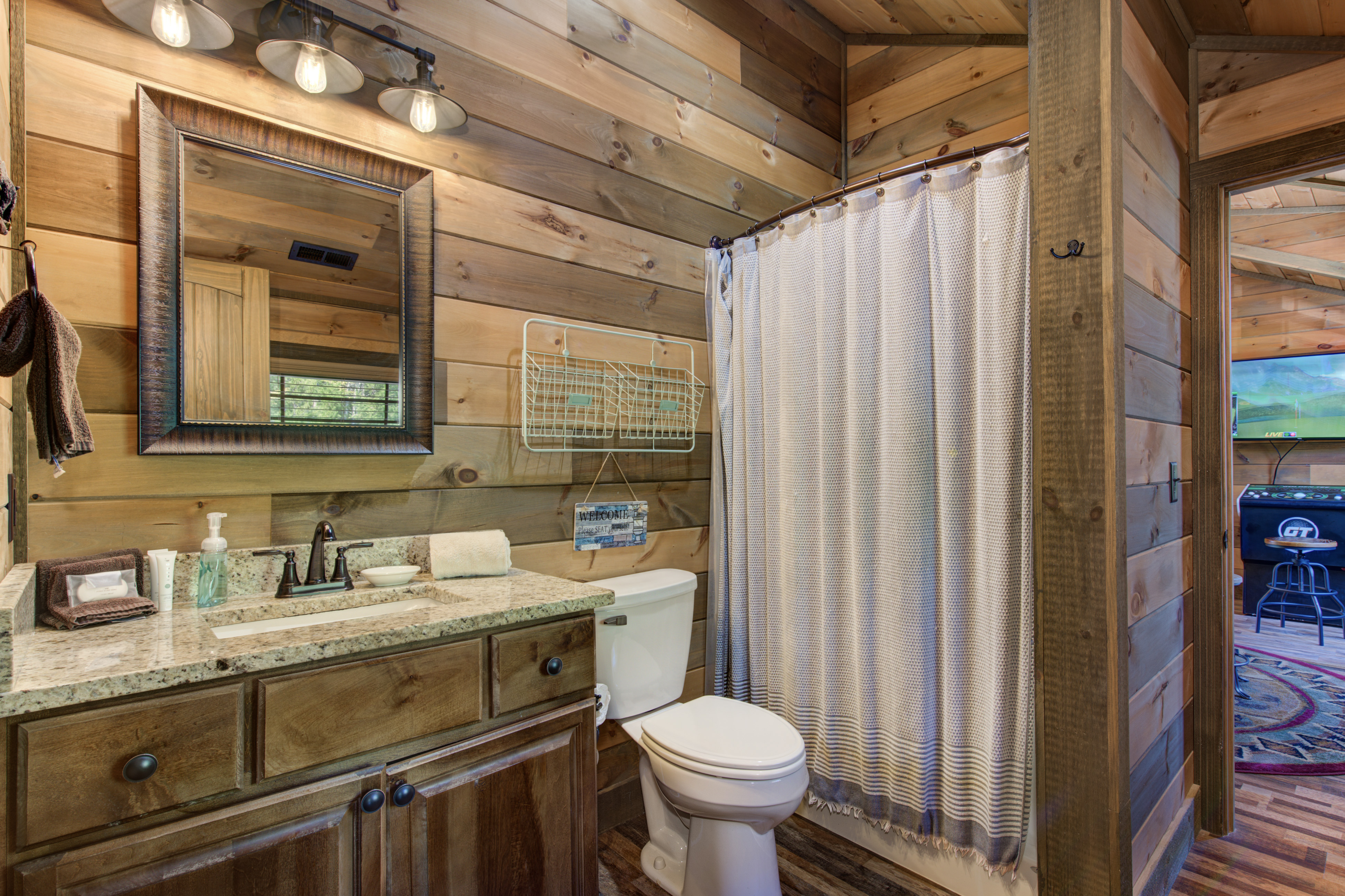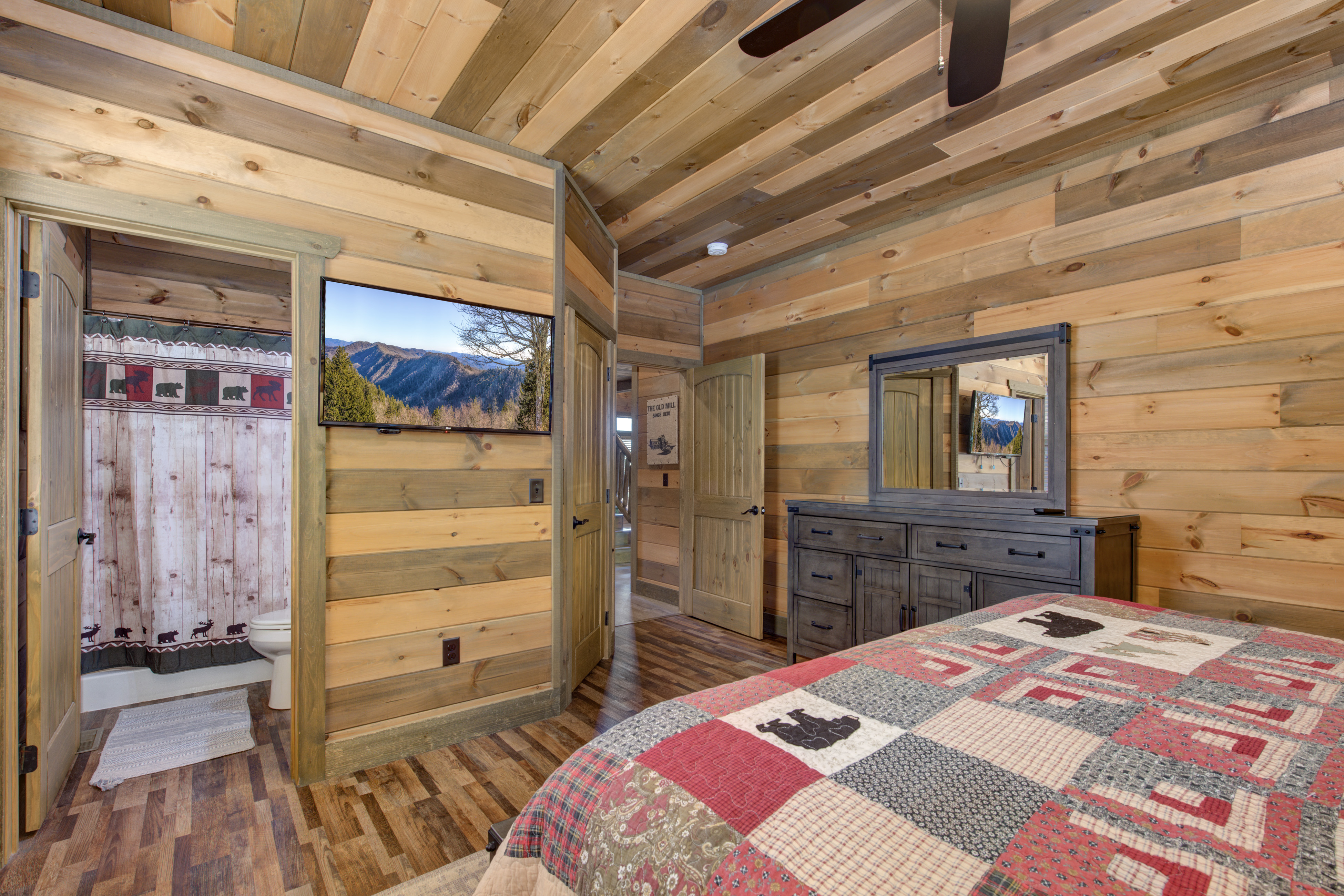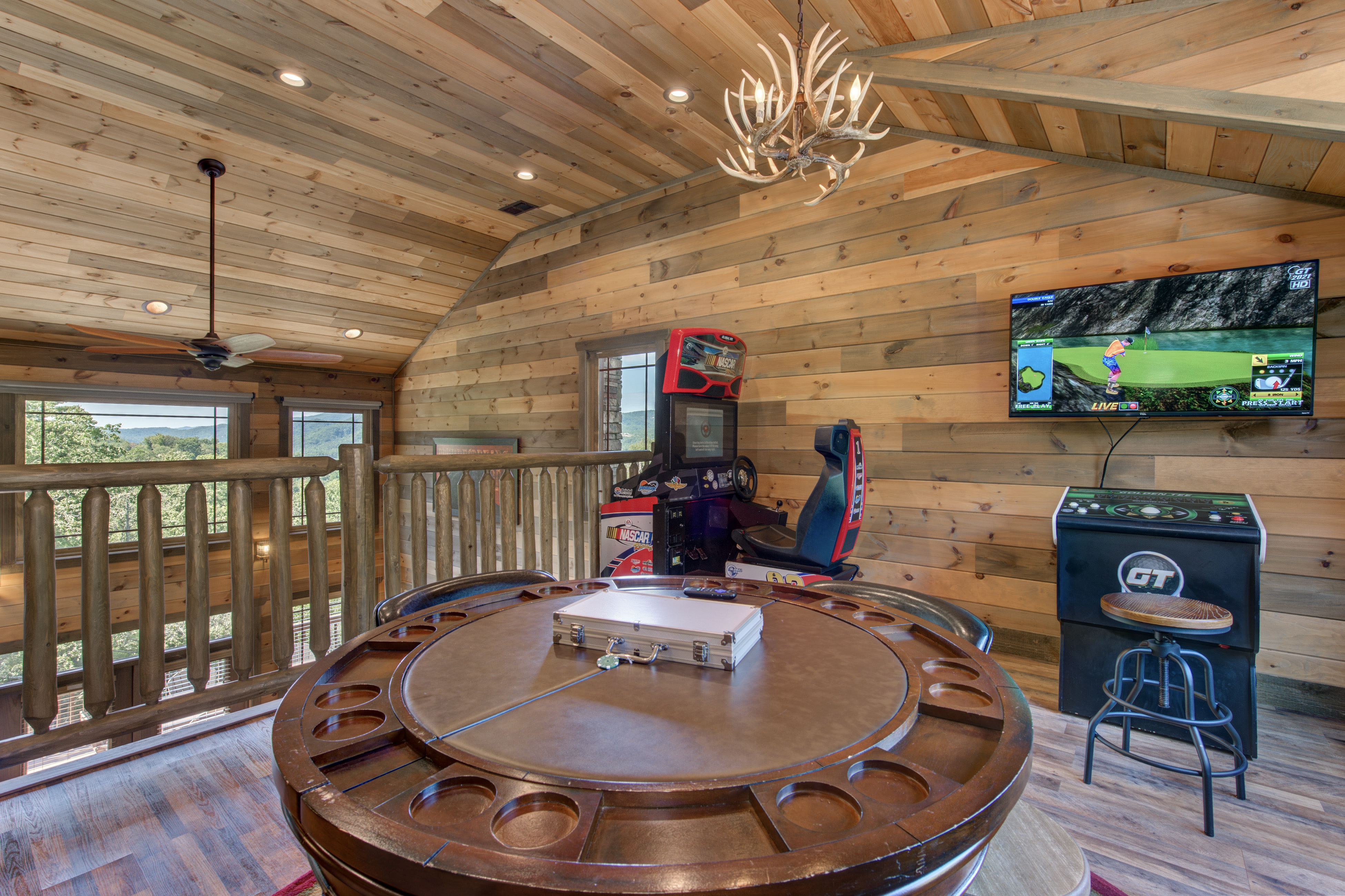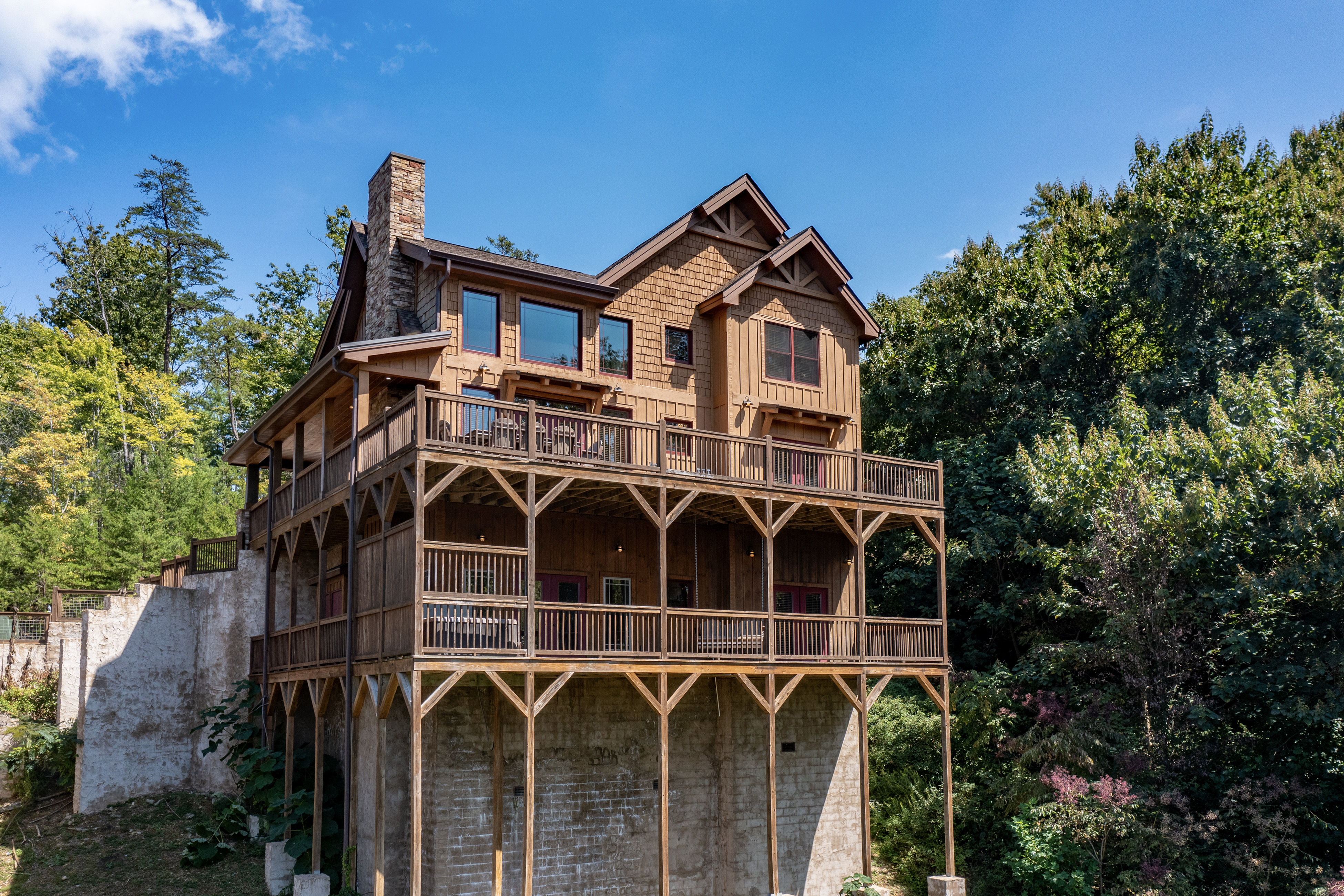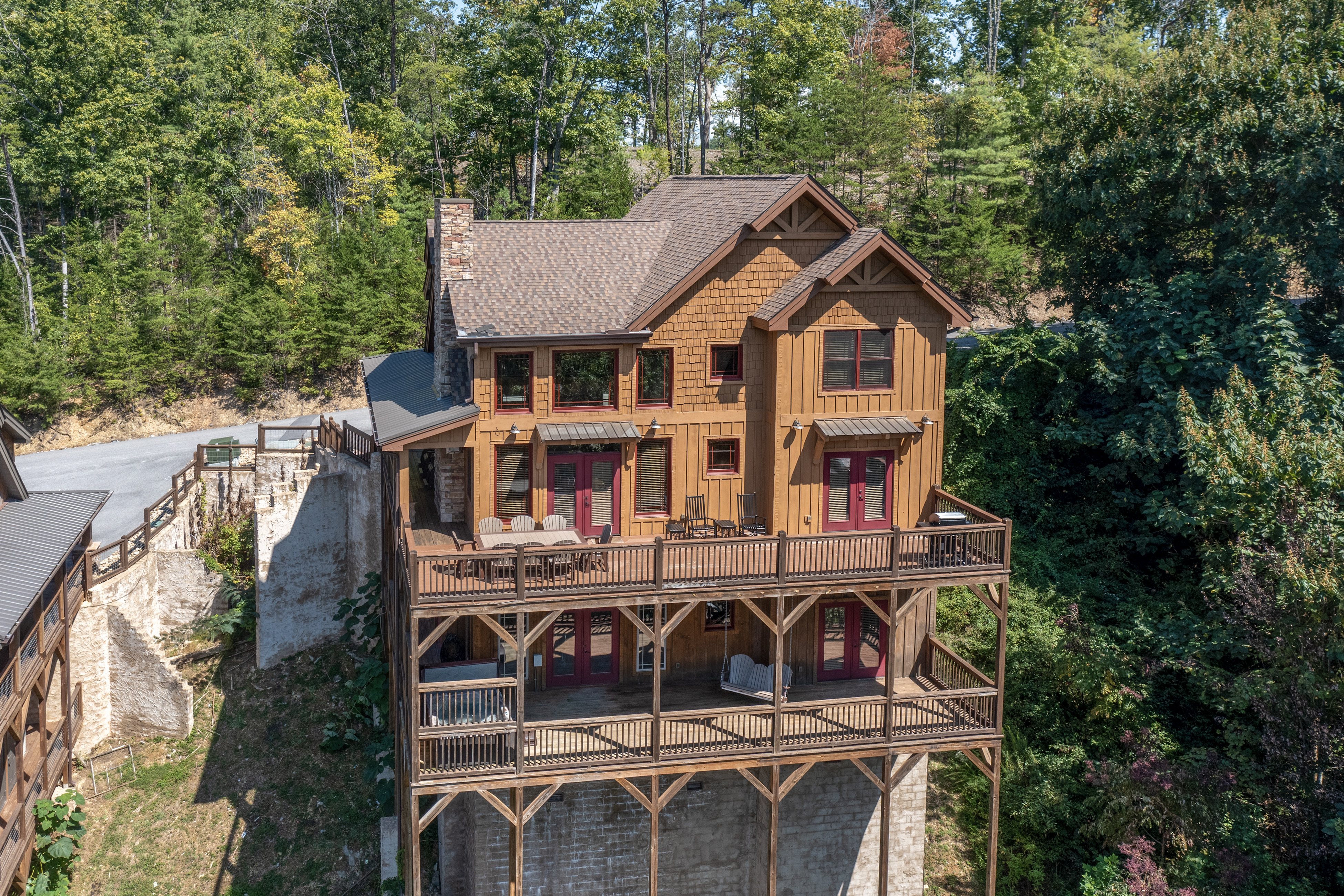 Welcome to Cloud Bound – Your Smoky Mountain Escape Discover a mountain retreat that combines breathtaking views, modern comforts, and endless fun. Cloud Bound is a one-of-a-kind cabin designed for families and friends to create lasting memories in the heart of the Great Smoky Mountains. From sunrise over the peaks to evenings relaxing in the hot tub, every moment here feels magical. The cabin is packed with features to entertain. Guests can splash year-round in the private indoor pool, enjoy movie nights in the theater room, or spend hours playing air hockey and arcade games. Outdoors, the expansive back deck offers beautiful mountain views, a bubbling hot tub, plenty of seating, and a dining table perfect for gathering together. Inside, the cozy living room fireplace adds warmth and charm, while a fully equipped kitchen with updated appliances, granite countertops, and a multi-serve coffee maker makes preparing meals a pleasure. The home also provides two indoor dining tables seating up to twelve, along with an outdoor dining table for six, so there is plenty of room for everyone. Sleeping arrangements are both comfortable and convenient. On the main level, the master bedroom offers a king bed, dresser, closet, TV, and ensuite with a standing shower, while a second bedroom also features a king bed, dresser, closet, TV, and an ensuite with a tub and shower combo. Upstairs, two additional bedrooms each include a king bed, dresser, closet, TV, and ensuite with a standing shower. On the lower level, a spacious bedroom holds a queen-over-queen bunk bed, a twin-over-twin bunk bed, a TV, and an air hockey table—perfect for kids or groups. The home has six bathrooms in total. The master ensuite includes a tub and shower combo, while another ensuite with a standing shower also offers shared access to the living room. Two additional ensuites feature standing showers, with one connecting to the game room, and a full bathroom is conveniently located in the pool room. A half bath is also available on the lower level. Guests enjoy thoughtful touches throughout their stay, including complimentary starter toiletries, fresh linens and towels, free WiFi, central heating and air conditioning, and a washer and dryer for added convenience. Parking is free for up to four vehicles. The property is located in the mountains, and while four-wheel drive is not required during normal conditions, it may be needed in snowy or icy weather.