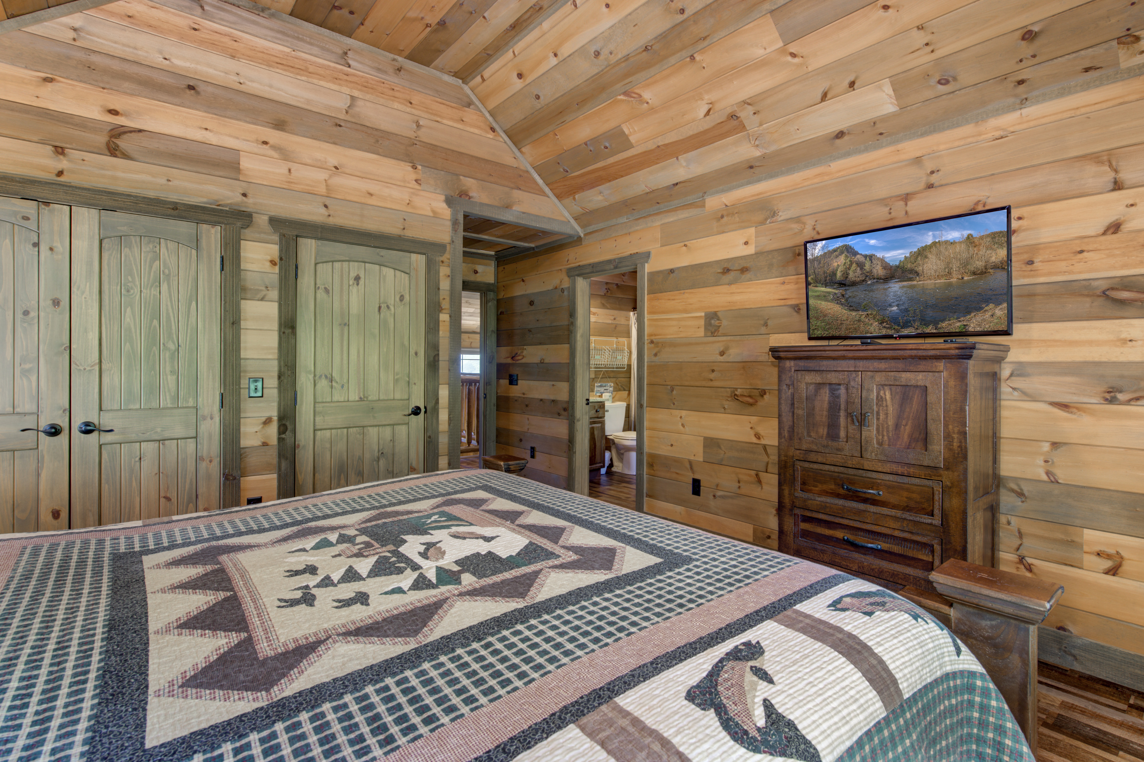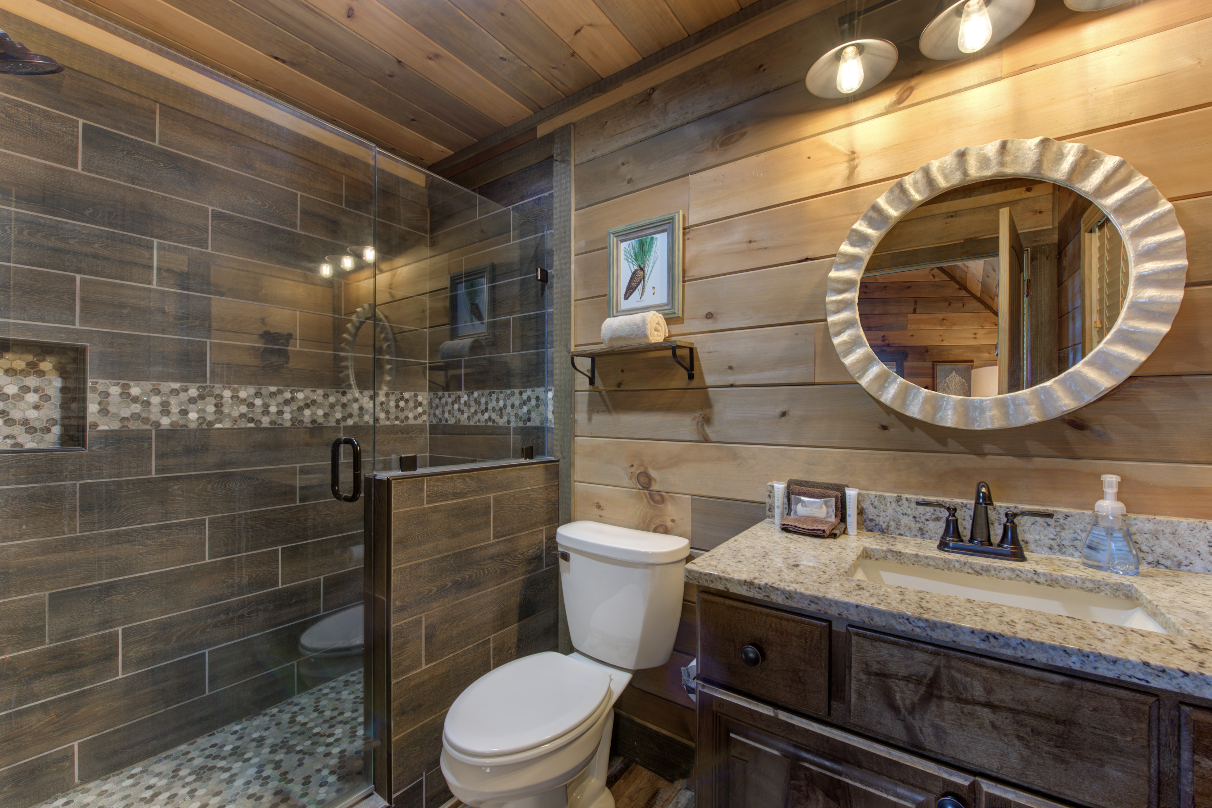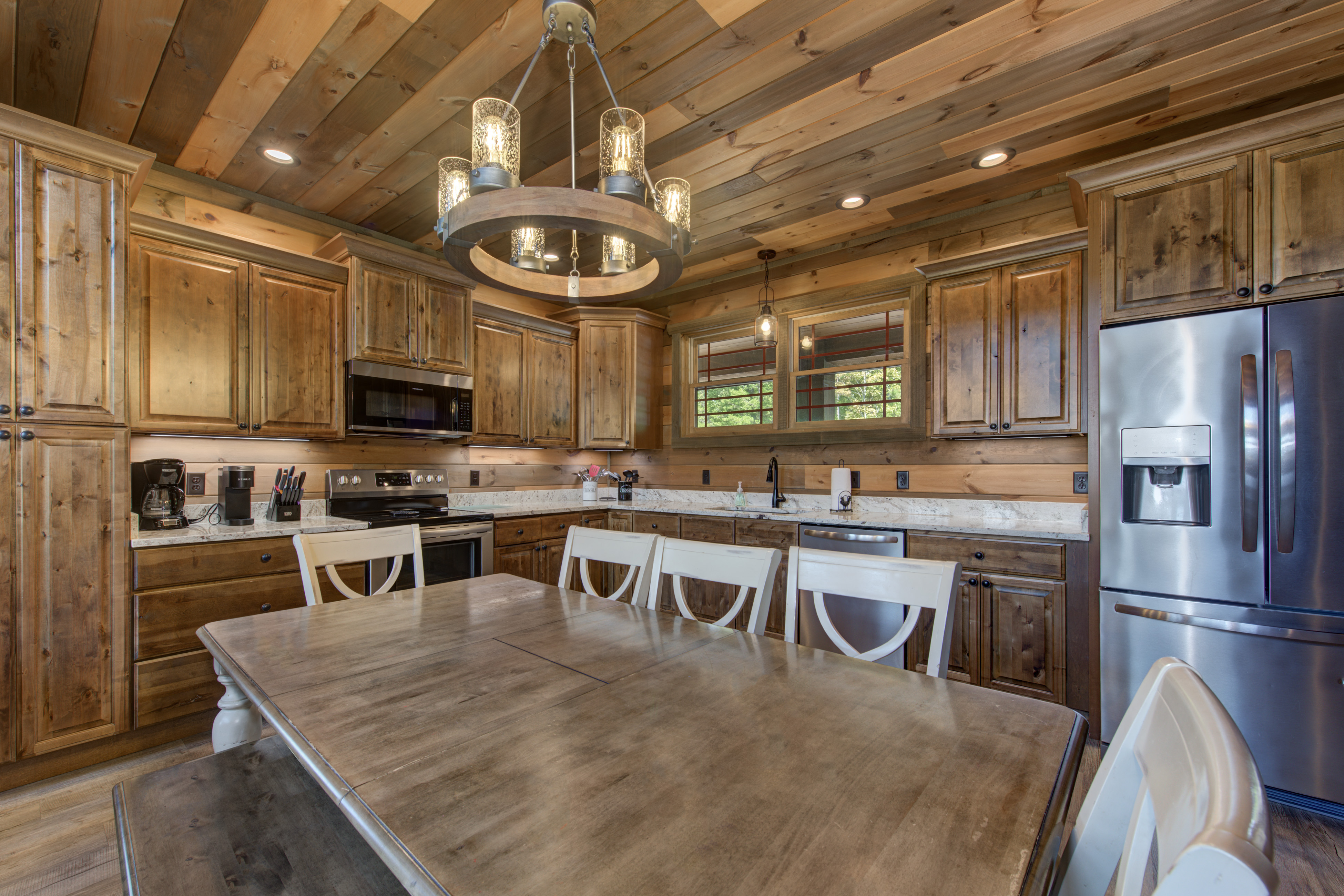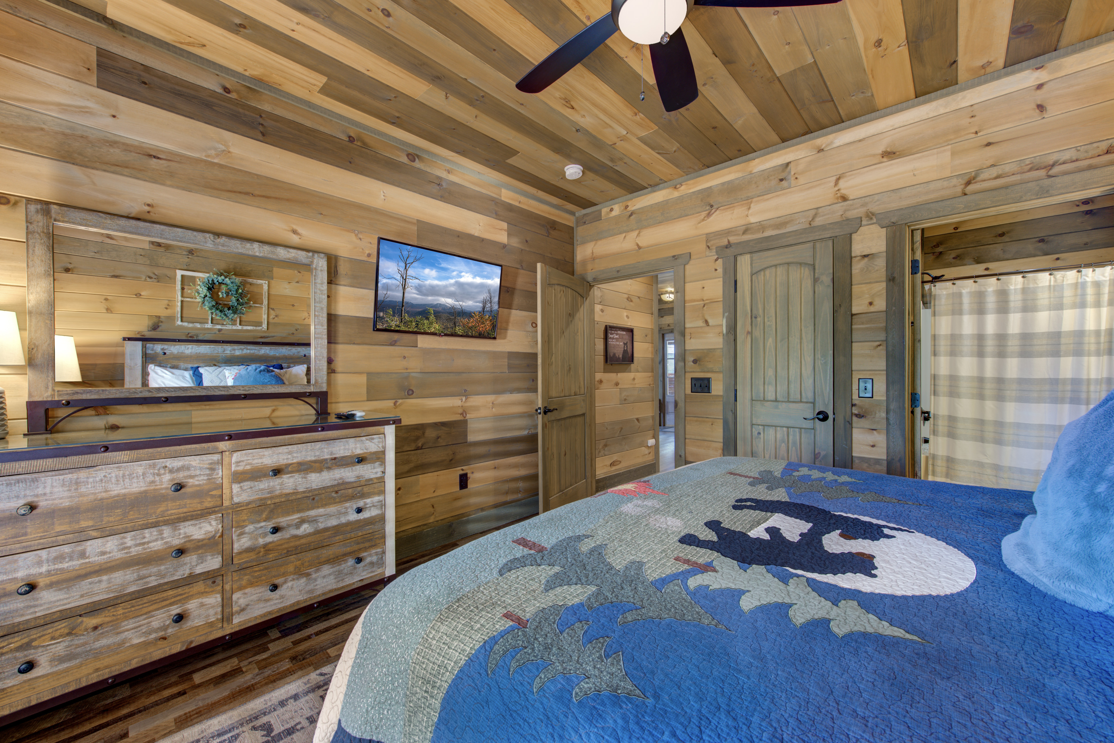 Welcome to Cloud Bound – Your Smoky Mountain Escape Discover a mountain retreat that combines breathtaking views, modern comforts, and endless fun. Cloud Bound is a one-of-a-kind cabin designed for families and friends to create lasting memories in the heart of the Great Smoky Mountains. From sunrise over the peaks to evenings relaxing in the hot tub, every moment here feels magical. The cabin is packed with features to entertain. Guests can splash year-round in the private indoor pool, enjoy movie nights in the theater room, or spend hours playing air hockey and arcade games. Outdoors, the expansive back deck offers beautiful mountain views, a bubbling hot tub, plenty of seating, and a dining table perfect for gathering together. Inside, the cozy living room fireplace adds warmth and charm, while a fully equipped kitchen with updated appliances, granite countertops, and a multi-serve coffee maker makes preparing meals a pleasure. The home also provides two indoor dining tables seating up to twelve, along with an outdoor dining table for six, so there is plenty of room for everyone. Sleeping arrangements are both comfortable and convenient. On the main level, the master bedroom offers a king bed, dresser, closet, TV, and ensuite with a standing shower, while a second bedroom also features a king bed, dresser, closet, TV, and an ensuite with a tub and shower combo. Upstairs, two additional bedrooms each include a king bed, dresser, closet, TV, and ensuite with a standing shower. On the lower level, a spacious bedroom holds a queen-over-queen bunk bed, a twin-over-twin bunk bed, a TV, and an air hockey table—perfect for kids or groups. The home has six bathrooms in total. The master ensuite includes a tub and shower combo, while another ensuite with a standing shower also offers shared access to the living room. Two additional ensuites feature standing showers, with one connecting to the game room, and a full bathroom is conveniently located in the pool room. A half bath is also available on the lower level. Guests enjoy thoughtful touches throughout their stay, including complimentary starter toiletries, fresh linens and towels, free WiFi, central heating and air conditioning, and a washer and dryer for added convenience. Parking is free for up to four vehicles. The property is located in the mountains, and while four-wheel drive is not required during normal conditions, it may be needed in snowy or icy weather.