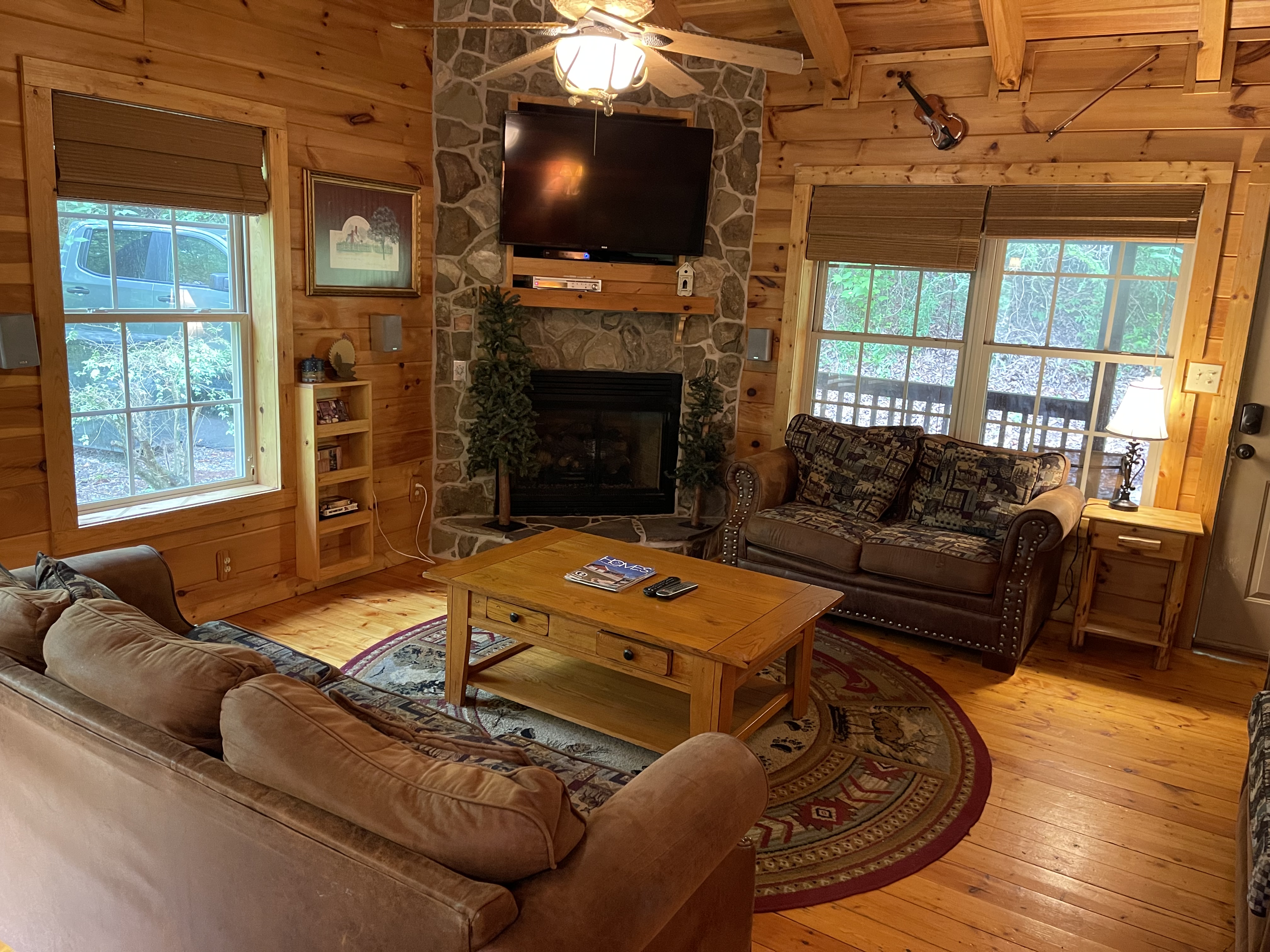 Sandra D. - 11/22/2024This was a last-minute romantic getaway for my husband and I. It was just what the doctor ordered. We had an issue with getting the fireplaces started and Lori got maintenance over immediately to get it fixed. She was quick to respond to any of my texts and questions. She was extremely helpful. The cabin was big enough for a small family, Perfect for the two of us. Loved the cabin and the hot tub. Only suggestion I would have to improve on the property, is to have some privacy Lattice work put up around the hot tub and maintenance on the ceiling fans. Other than that, the location was beautiful and a great get away.
