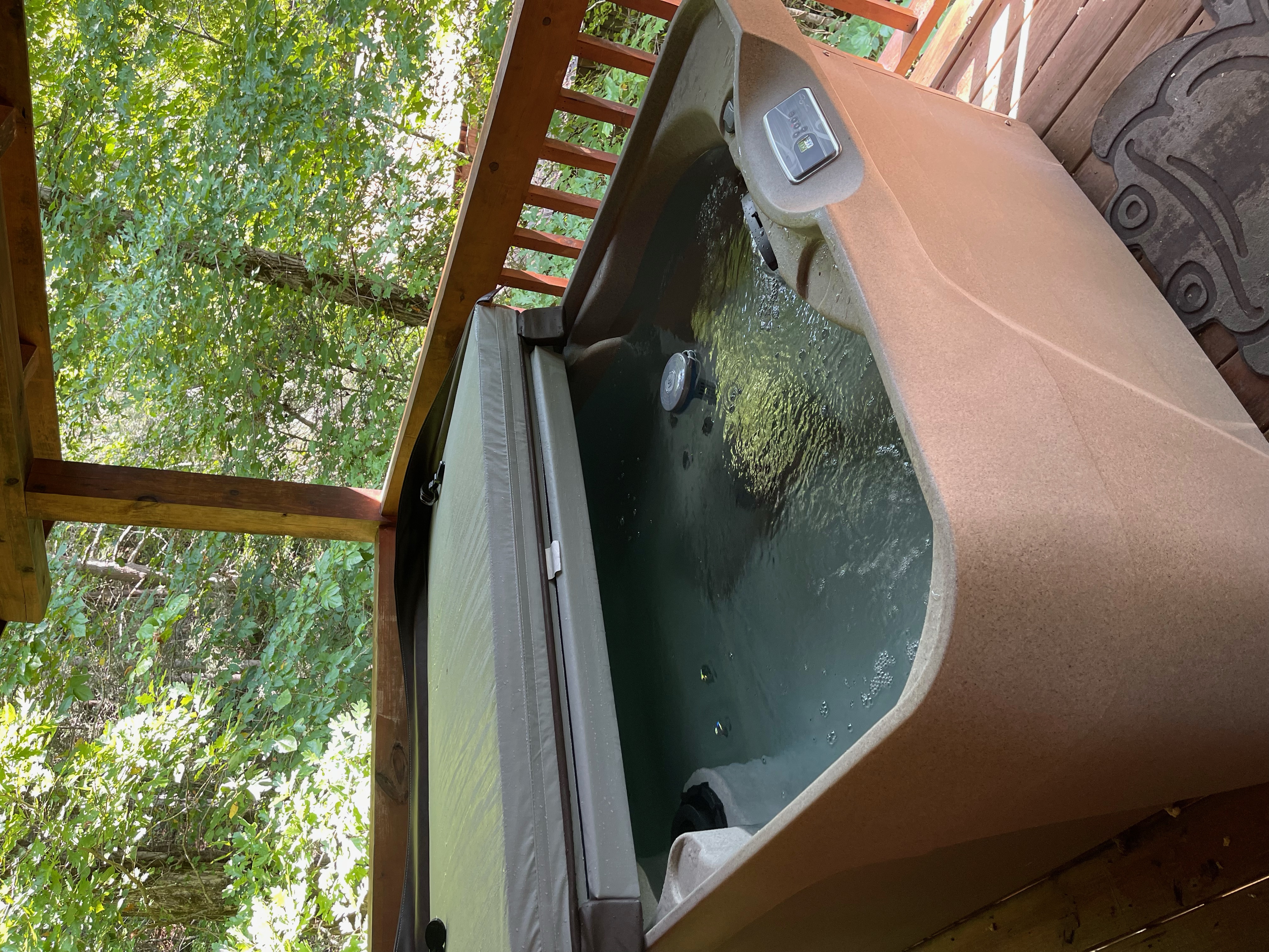 Crystal F. - 05/23/2024We loved hearing the creek and sitting in the hot tub we had just sold our house with ours. Would love to stay there again when we return.