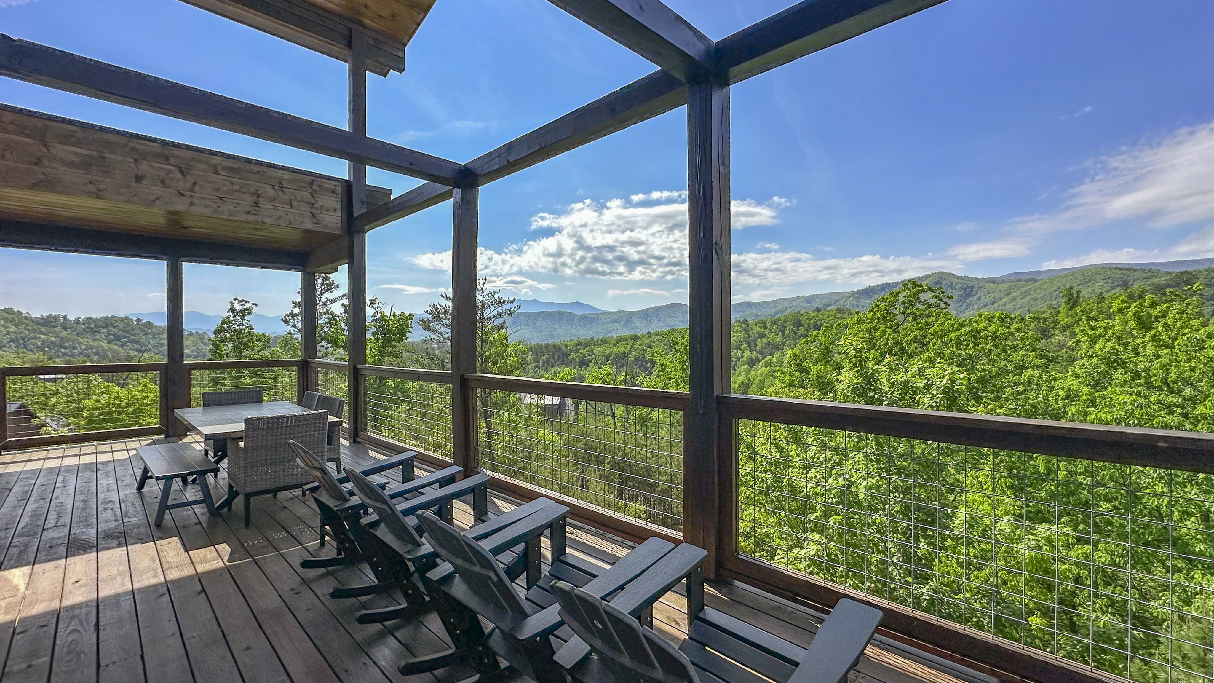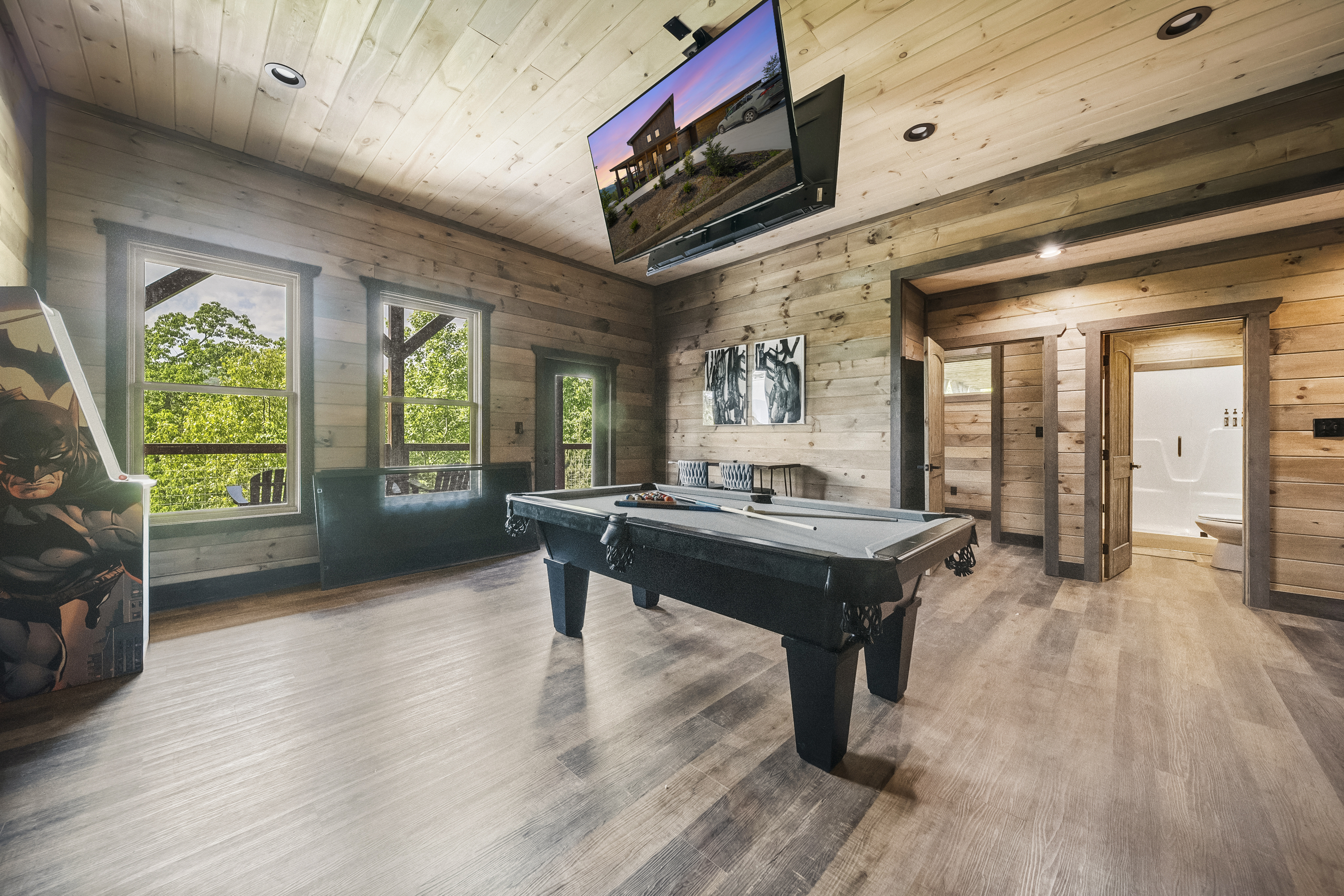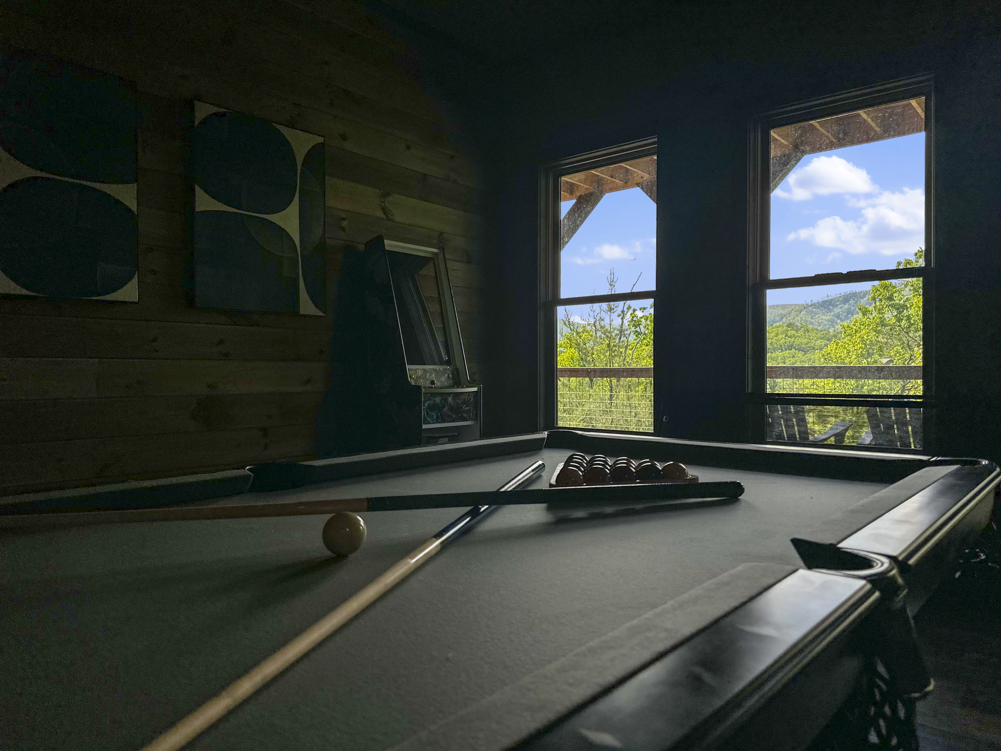Welcome to your perfect mountain getaway! This spacious 4-bedroom cabin offers stunning panoramic mountain views and all the comforts and entertainment options you need for an unforgettable stay. Unwind in the private hot tub as you soak in the serene scenery, or challenge your friends and family to a game of pool, foosball, or arcade classics in the game room. Whether you're here to relax or play, this cabin has something for everyone. The fully equipped kitchen makes it easy to prepare home-cooked meals, with everything you need from cookware to modern appliances. Gather around the dining table or enjoy your meals on the deck while taking in the fresh mountain air. After a day of adventure, retreat to one of four cozy bedrooms for a peaceful night's sleep. With ample space and comfortable furnishings, it's the ideal home base for families or groups. Non shedding pets under 30lbs. Our housekeeper charges extra for shedding dogs.