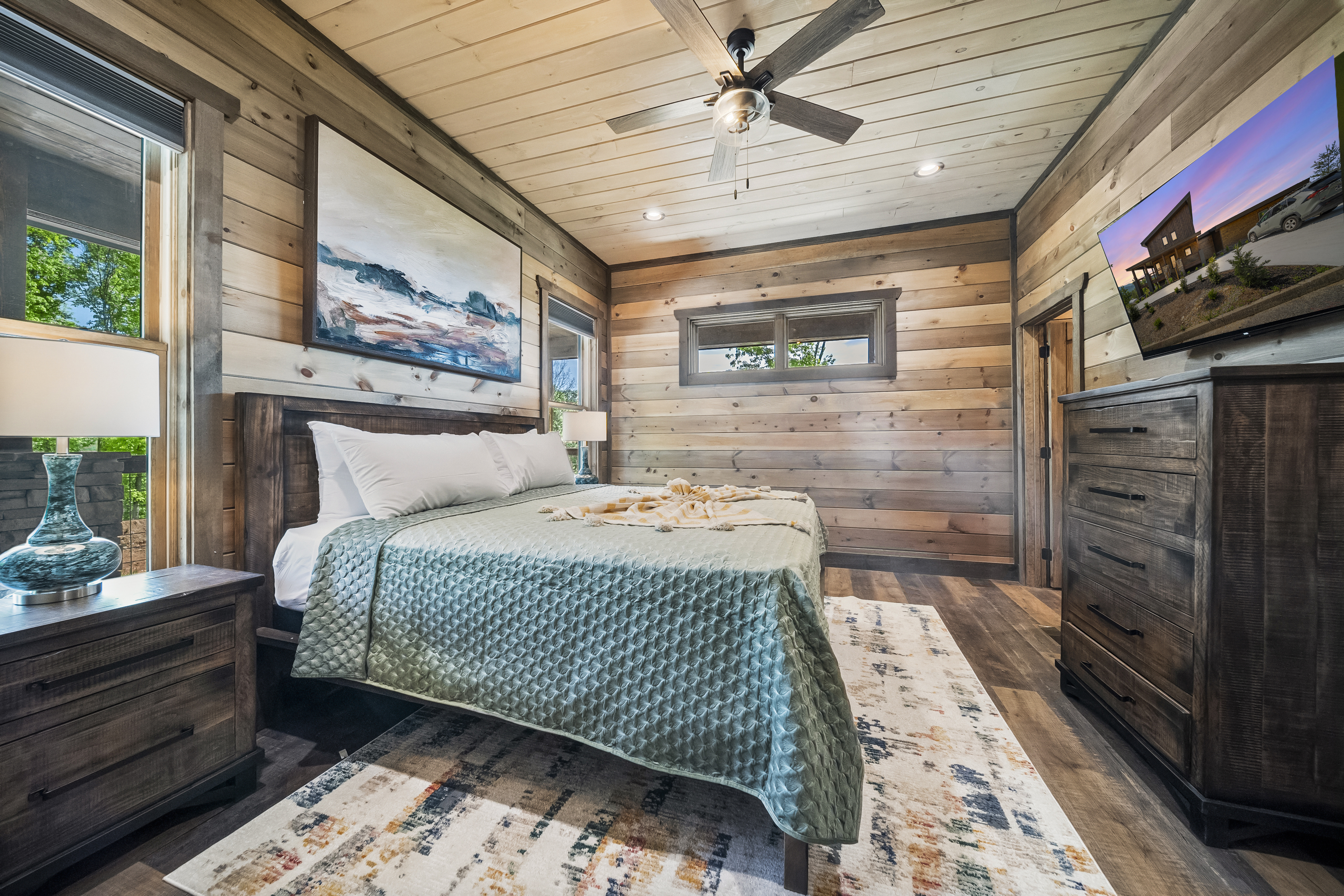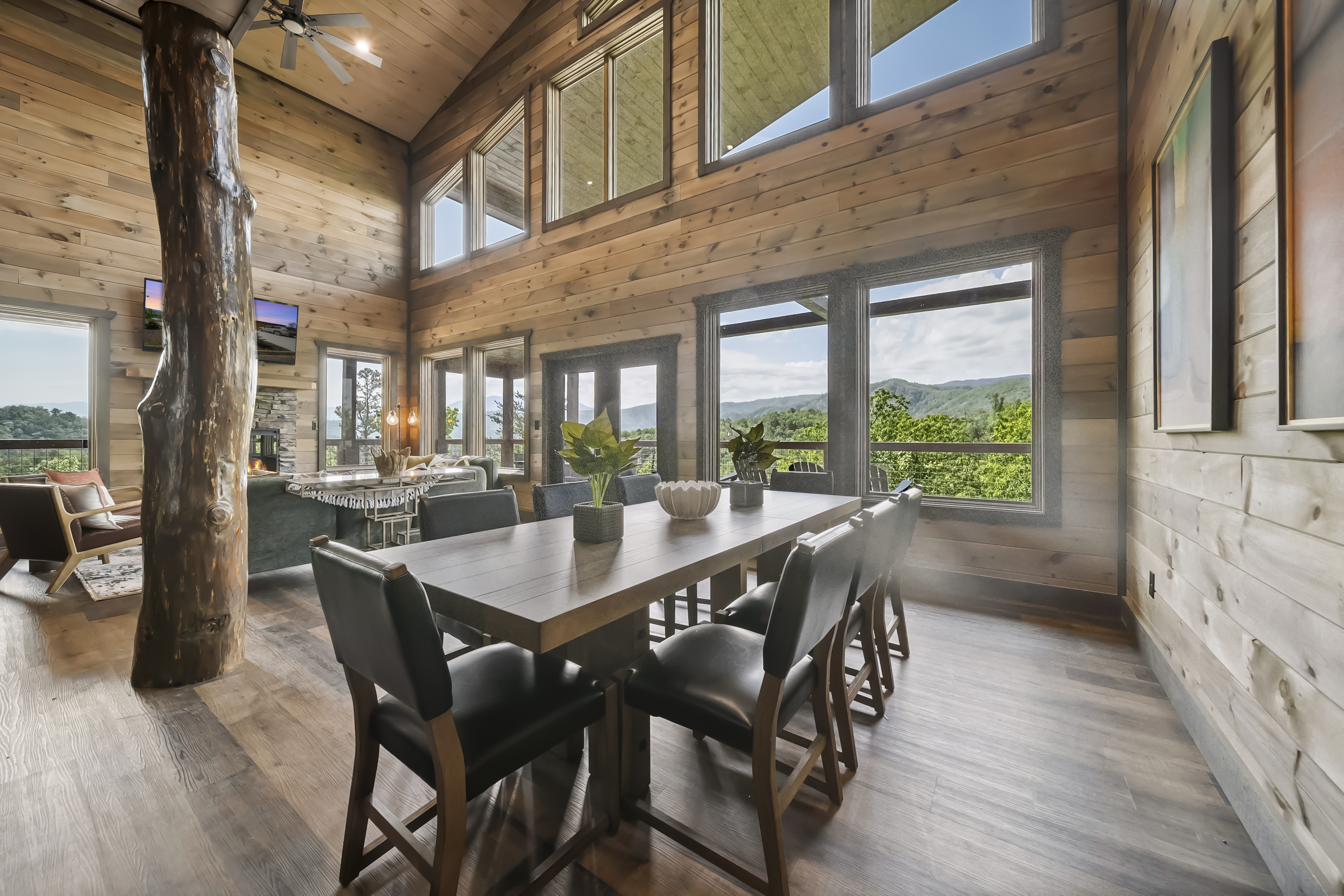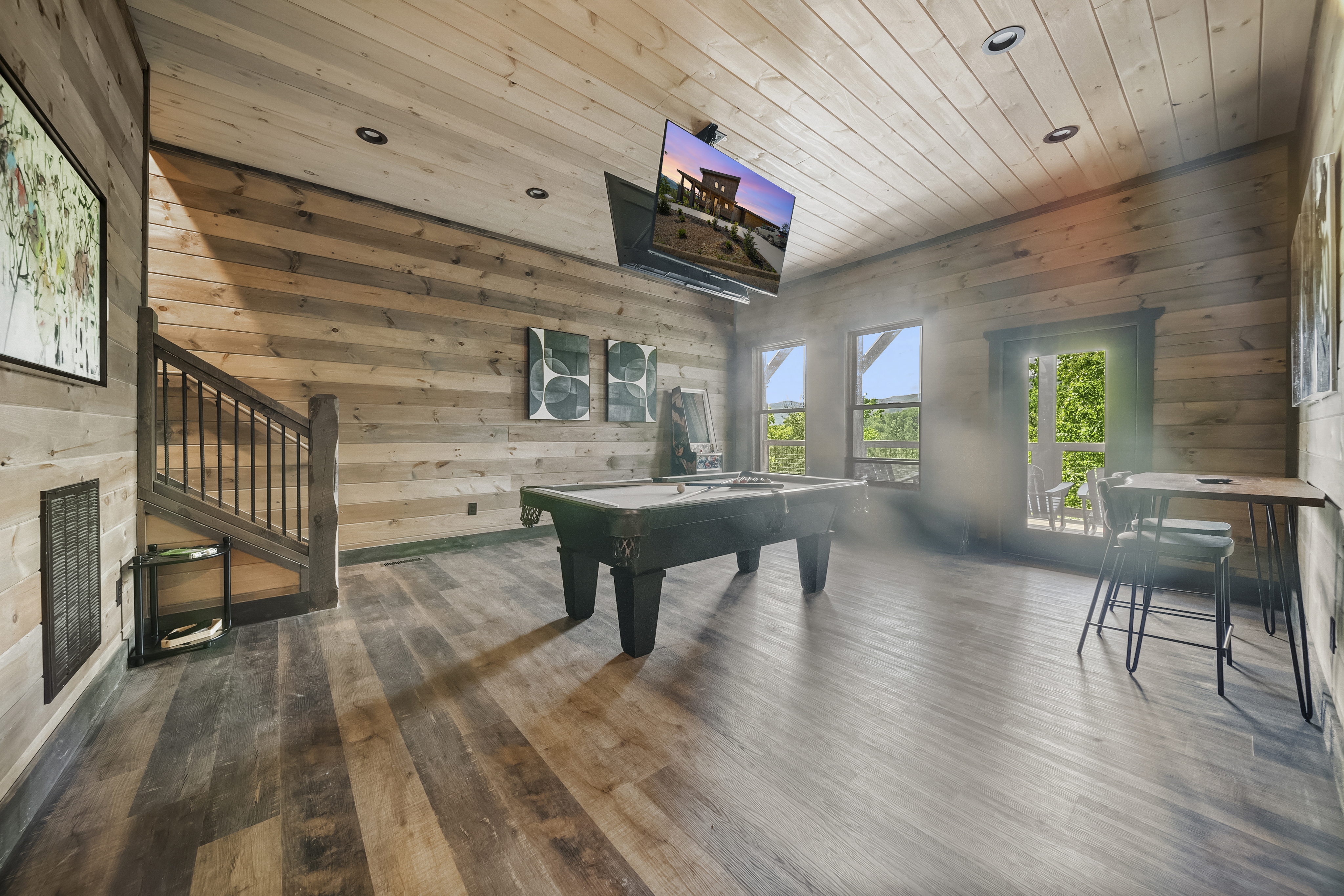 Welcome to your perfect mountain getaway! This spacious 4-bedroom cabin offers stunning panoramic mountain views and all the comforts and entertainment options you need for an unforgettable stay. Unwind in the private hot tub as you soak in the serene scenery, or challenge your friends and family to a game of pool, foosball, or arcade classics in the game room. Whether you're here to relax or play, this cabin has something for everyone. The fully equipped kitchen makes it easy to prepare home-cooked meals, with everything you need from cookware to modern appliances. Gather around the dining table or enjoy your meals on the deck while taking in the fresh mountain air. After a day of adventure, retreat to one of four cozy bedrooms for a peaceful night's sleep. With ample space and comfortable furnishings, it's the ideal home base for families or groups. Non shedding pets under 30lbs. Our housekeeper charges extra for shedding dogs.