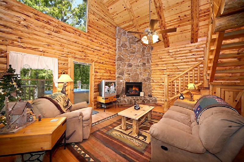 Located in Pigeon Forge, Tennessee, just outside the Great Smoky Mountains and Gatlinburg, the Mountain Honeymoon, one-bedroom cabin is the perfect log cabin for honeymooners or those sweethearts looking for the ideal romantic cabin. As you enter this romantic retreat your eyes immediately focus on the luxurious furnishings and the majestic stacked stone fireplace. This log cabin has privacy, seclusion, and great mountain views but is close to Pigeon Forge and Gatlinburg. The fully equipped kitchen is ready for cooking. Bring candles and champagne for relaxing in the heart shaped Jacuzzi or enjoying the great outdoors in your hot tub. With luxurious furnishings and rustic charm you will not be disappointed with Mountain Honeymoon.
