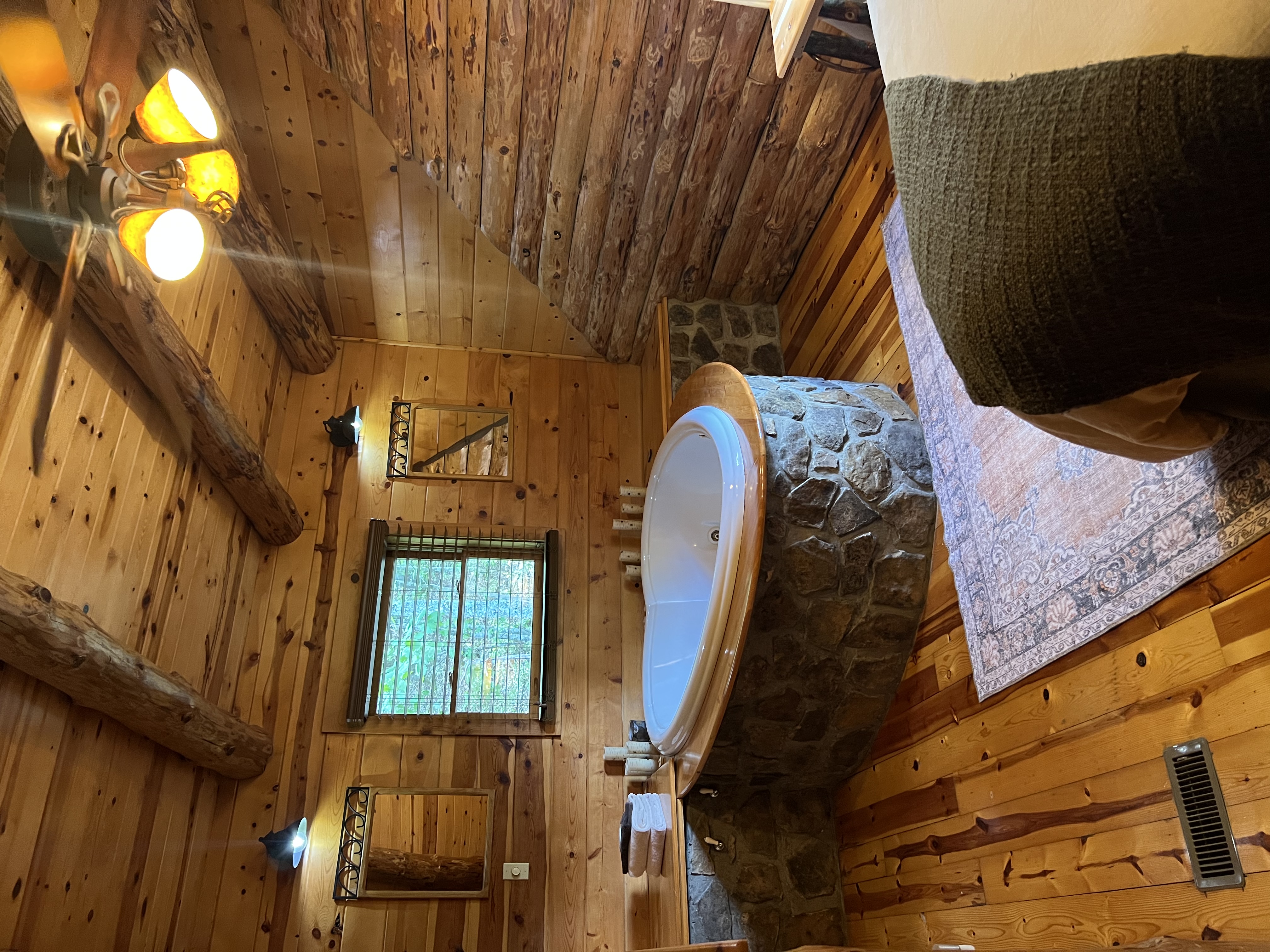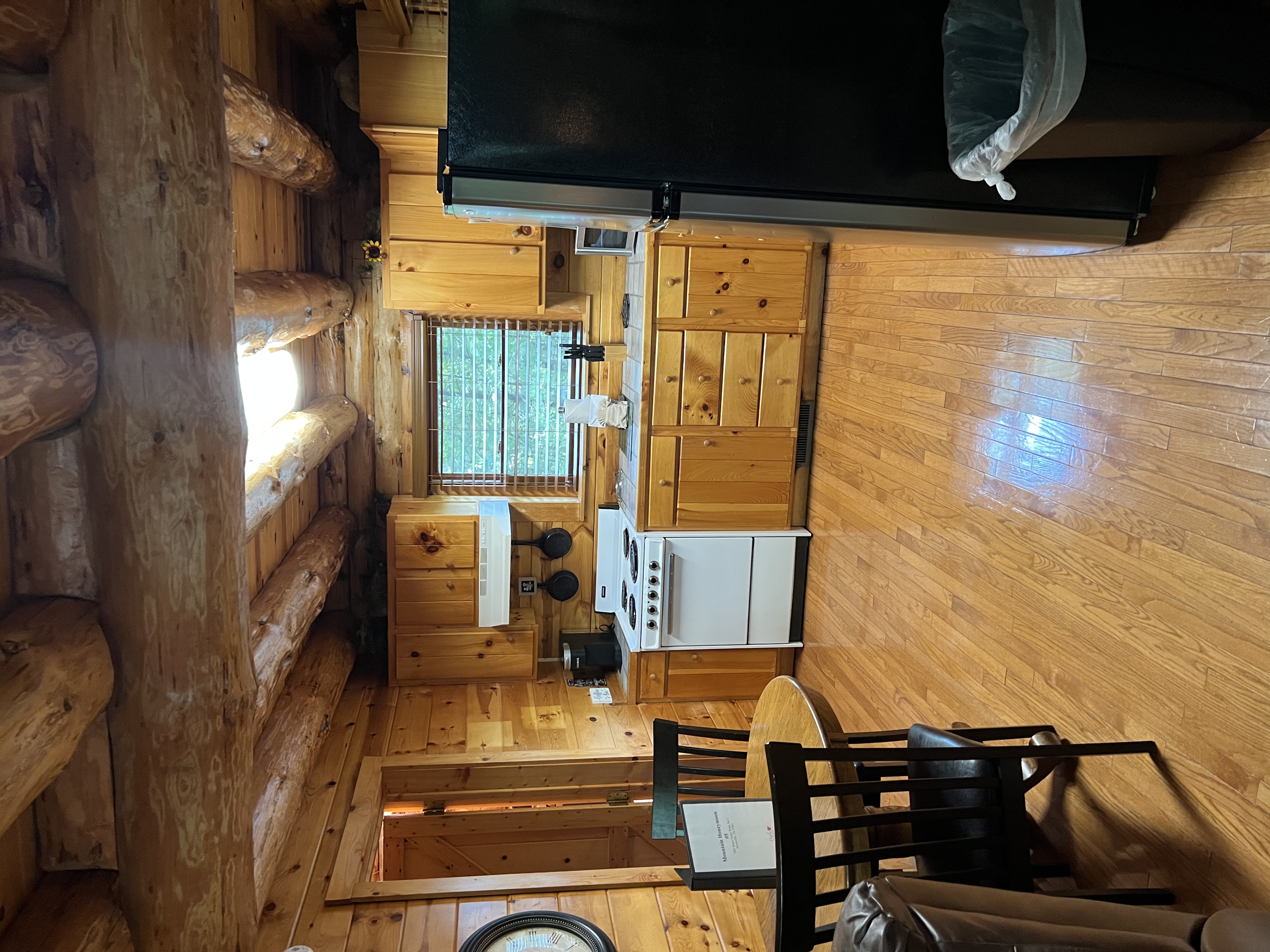 Olivia C. - 05/11/2024The instructions to get there were a little confusing but the staff was super friendly and helpful, and the cabin was beautiful! The hot tub was clean and the kitchen was well equipped with cooking utensils and bowls. Good location, only a few minutes from town. As far as instructions for getting there just go to the address provided and then look across the street to the gated driveway and thats where the cabins are. I left a shirt in the cabin and they were very helpful in finding it and mailing it back to me. I would definitely recommend this place!