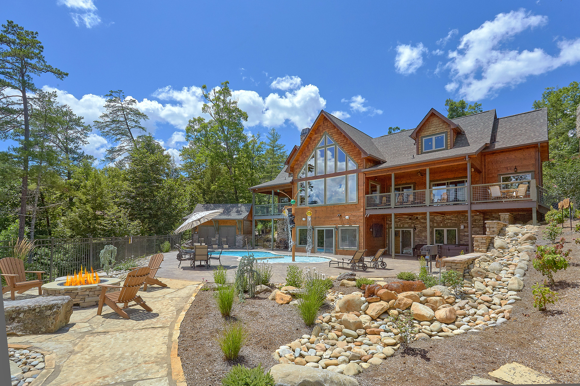 Deborah L. - 06/04/2021This home was fabulous. Gorgeous setting. Views from the windows of the house and the back patio were great. Very quiet area. It was exactly what my family wanted. The pool, firepit, hammocks and disc swing were well loved by our family. Indoors our kids enjoyed the video games and the movie room. The kitchen and indoor and outdoor dining areas allowed us to enjoy staying in several nights and cook for ourselves rather than go out to restaurants.