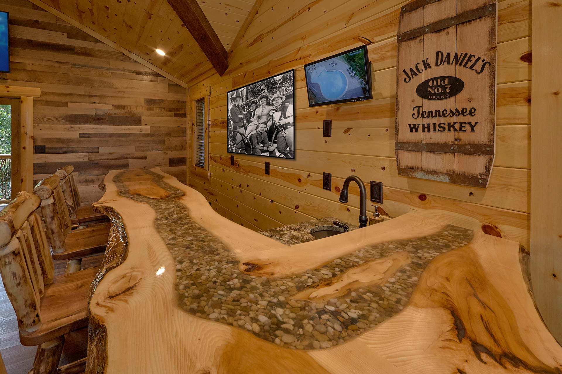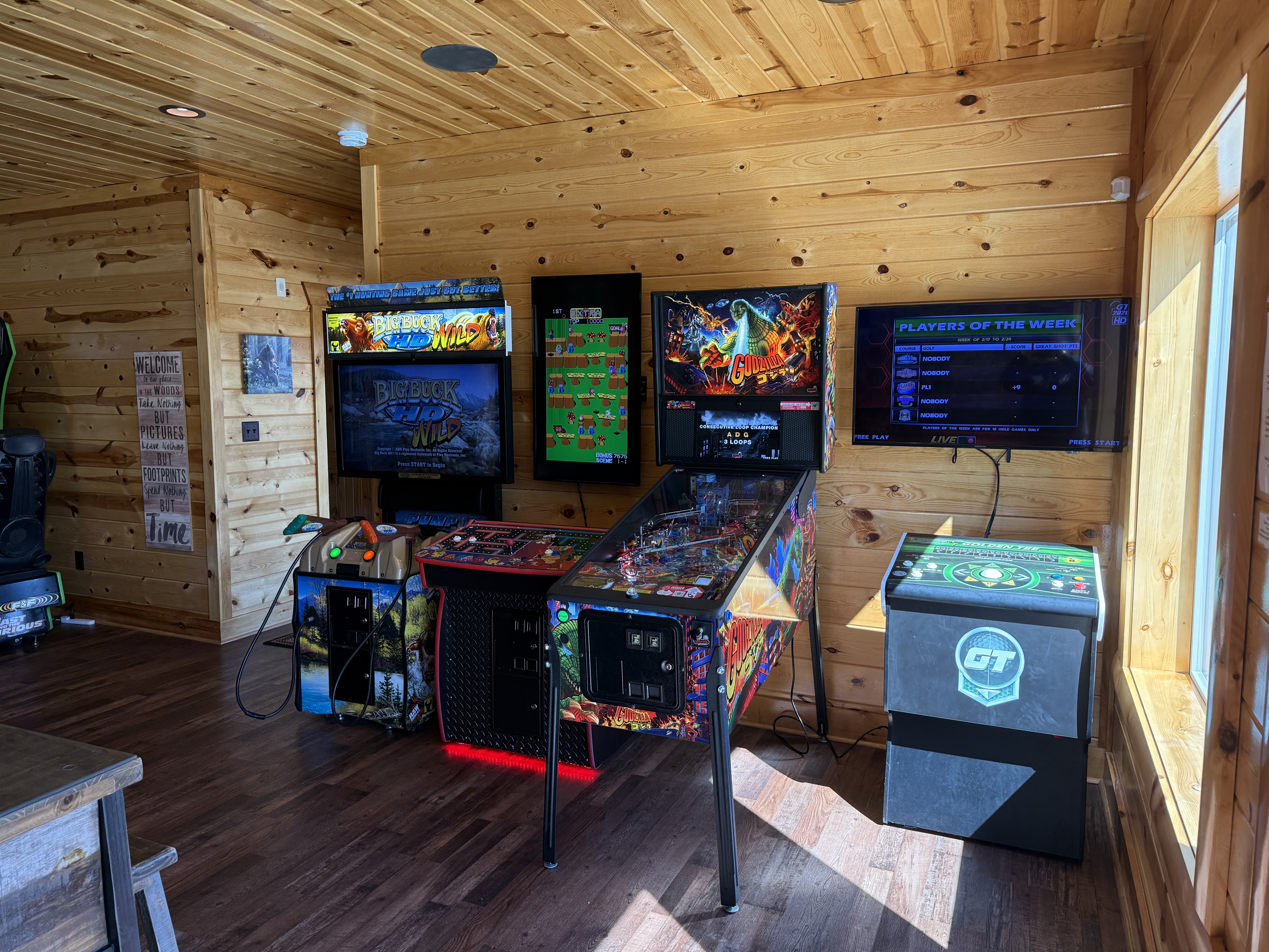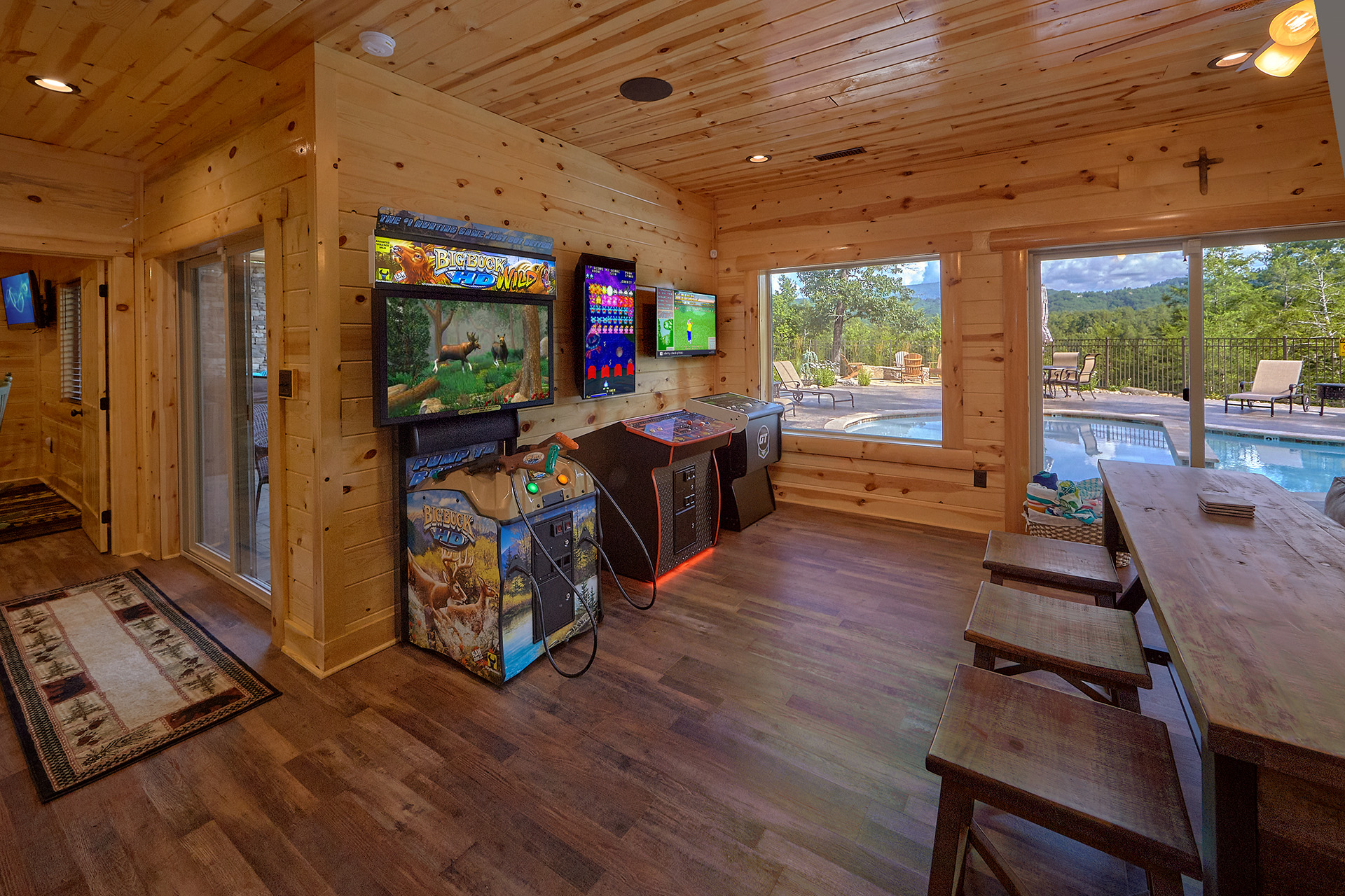 Elana M - 02/15/2021I was with my husband and 9-year-old son and my dear friends who have two girls 7 and 8. The kids most have told us 100 times how much they loved the cabin and how they wish we could stay longer. When we first arrived and they ran to the lower level and discovered the arcade and movie theater, they were screaming with excitement. The adults loved the very well-equipped kitchen, the gorgeous layout, and even the speakers all throughout the house. We were able to log into our music app. and play music in all or any rooms we chose. Another great plus is that all of the bedrooms are master bedrooms. They are all equally as nice. We stayed here over the winter, so we did not make use out of the pool. This is a fantastic all-season cabin. Even without using the pool, the kids were outside on the swing for hours at a time, and in the evening we were all outside using the BBQ and toasting marshmallows on the fire pit. We did not care when that most of our visit to Tennessee was rainy. We loved just chilling at the cabin. This is the place! Stop scrolling and just book it.
