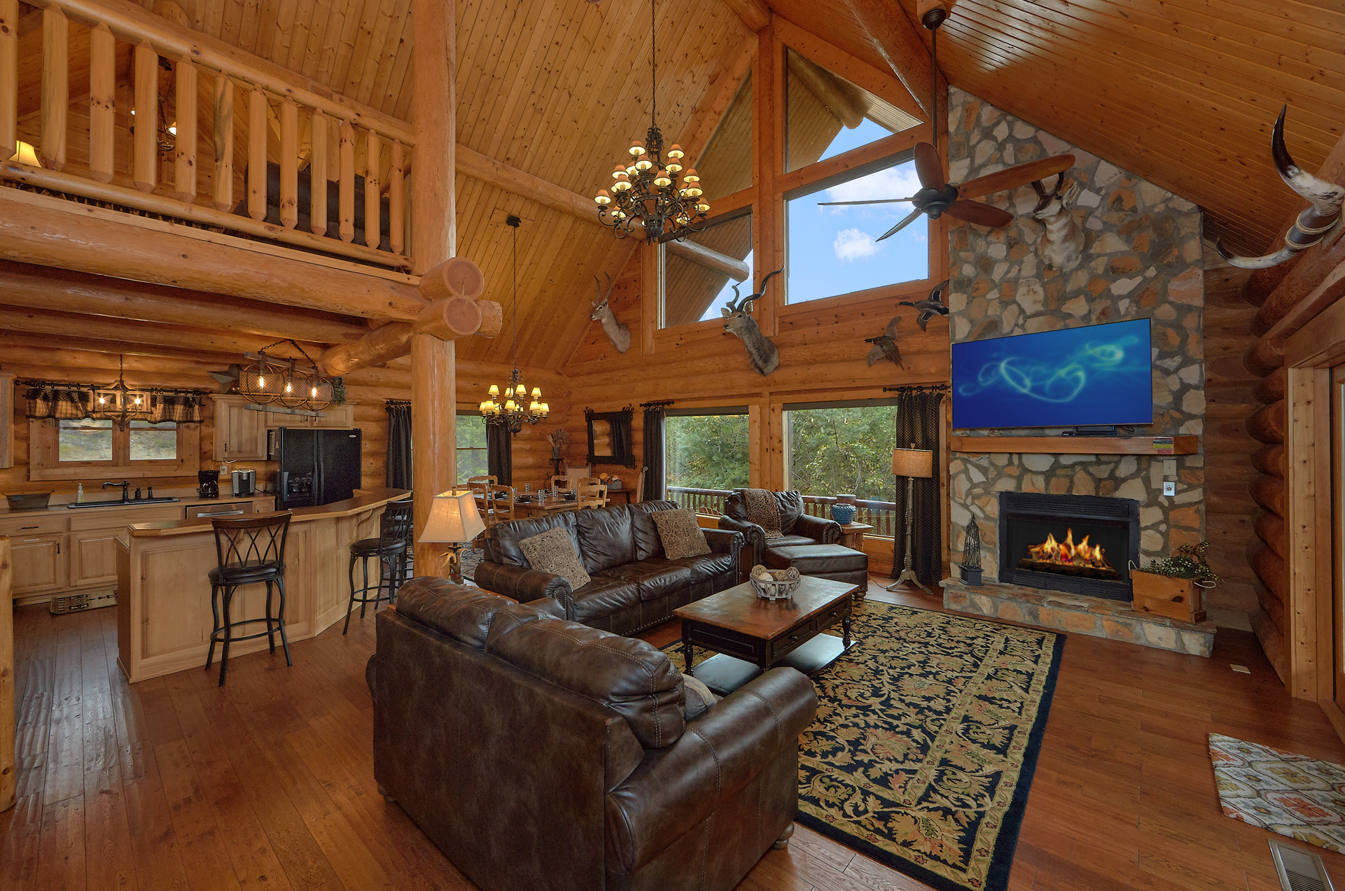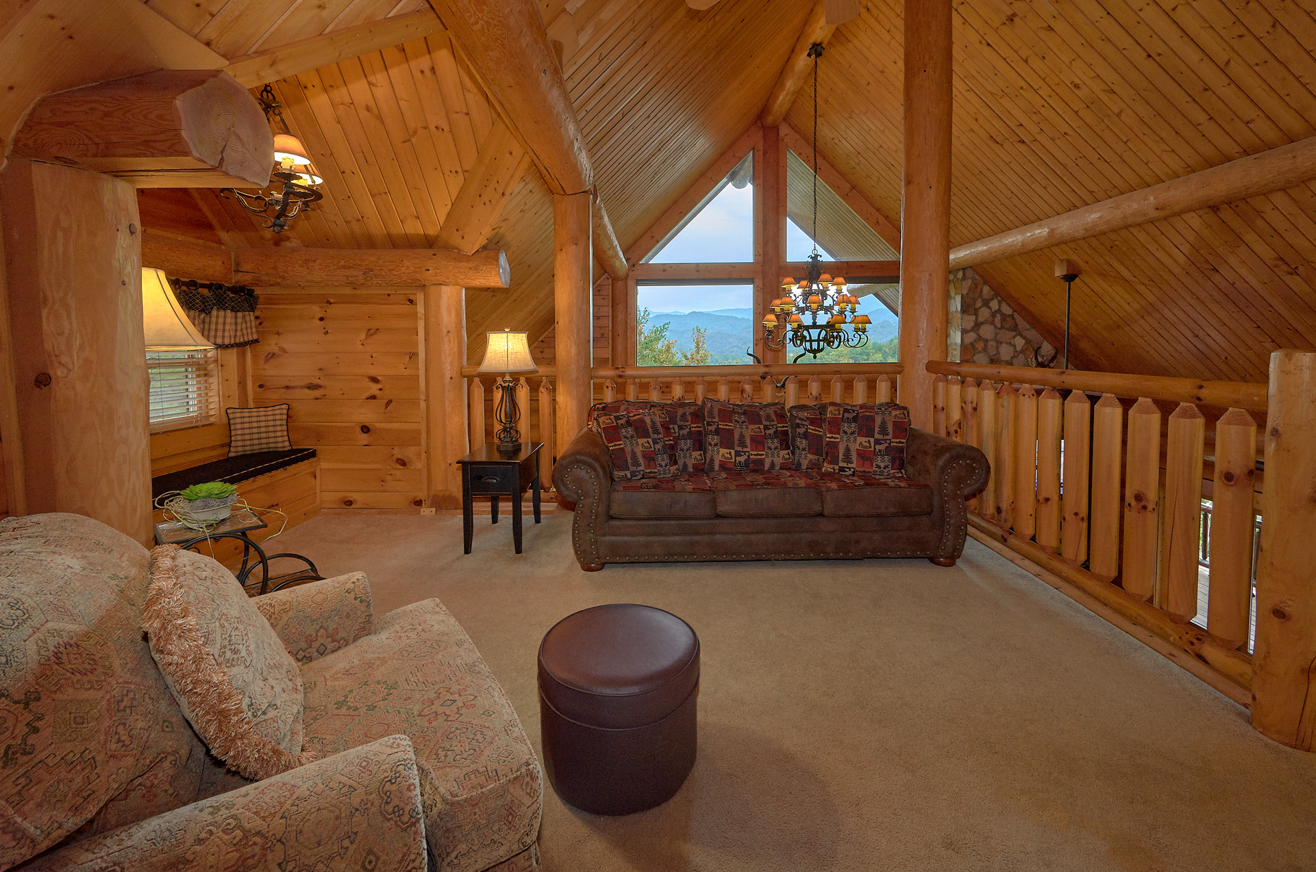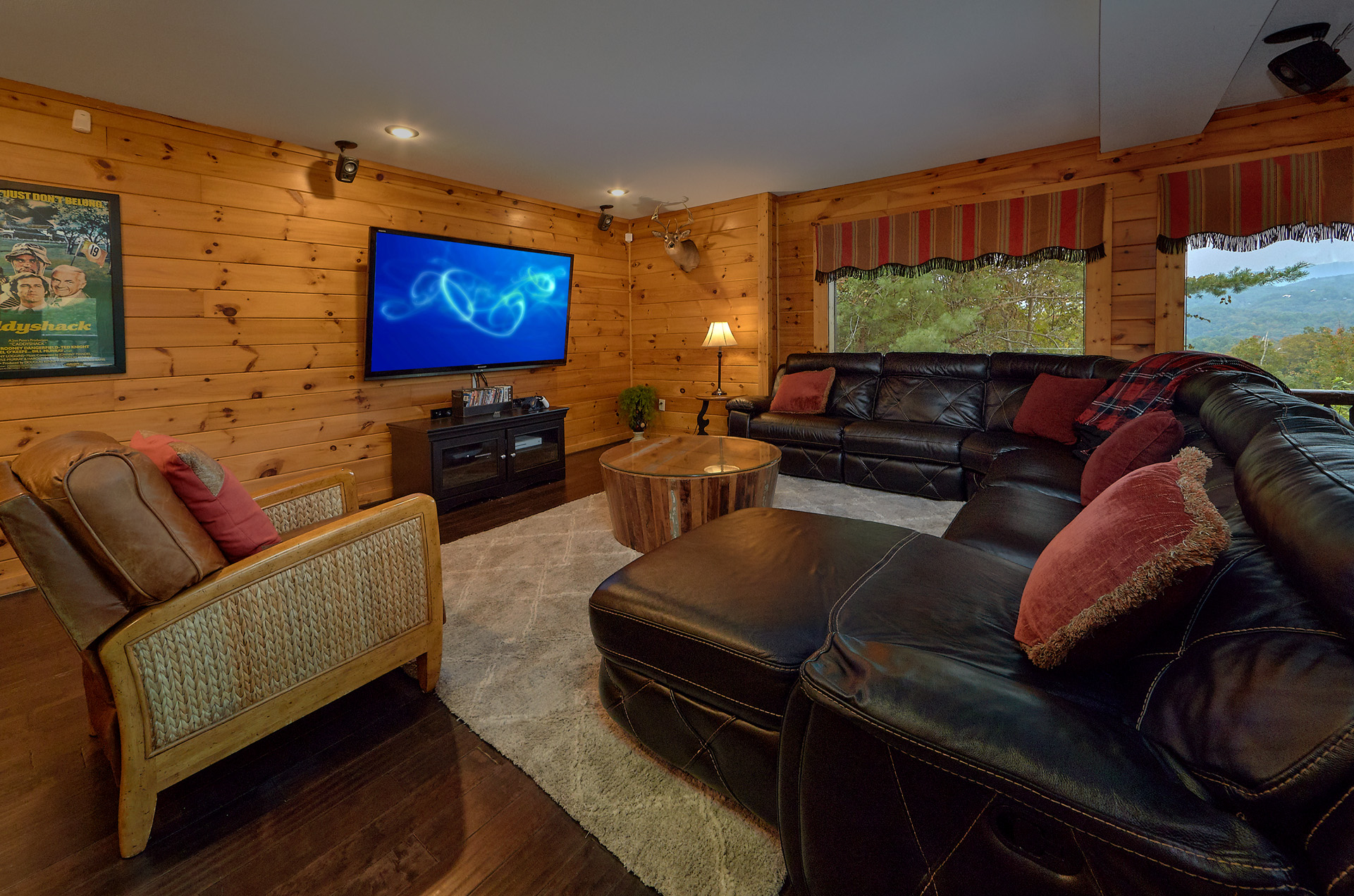 If you're seeking a stunning luxury cabin with panoramic views, look no further than Mountaintop Paradise! This premium 4-bedroom, 3-bath cabin offers breathtaking views of the Smoky Mountains from every floor, greeting you the moment you step inside. Combining mountain charm with high-end comfort, this spacious custom-built log home is perfect for a relaxing getaway from the hustle and bustle of daily life. Located in Cedar Falls, one of Pigeon Forge's most prestigious resorts, this unique cabin offers access to an outdoor pool, children's play area, and a catch-and-release pond. Recently updated with top-tier furnishings and decor, it boasts flat-screen HDTVs in every room, including a massive 80-inch HDTV with surround sound in the theater area! The game room is a gamer's dream, featuring a pool table, shuffle board, 72 FREE PLAY arcade games, a racing car simulator. Just 6 minutes from downtown Pigeon Forge, you'll have easy access to top attractions like Dollywood, Beyond The Lens!, the Hatfield & McCoys Dinner Show, and Dixie Stampede. Plus, you're only a short drive from the entrance to the Great Smoky Mountains National Park. With its impressive features and amenities, Mountaintop Paradise promises your family a royal experience. Don’t wait—make your dream mountain vacation a reality by reserving this spectacular cabin today!