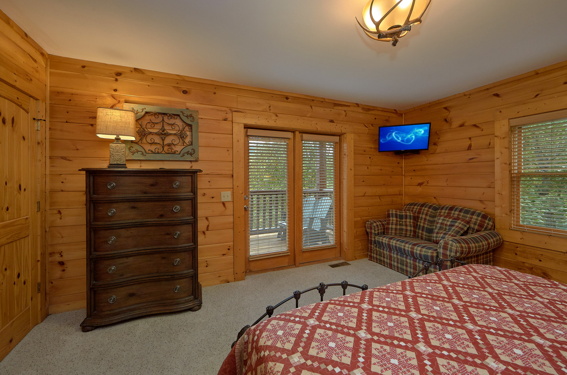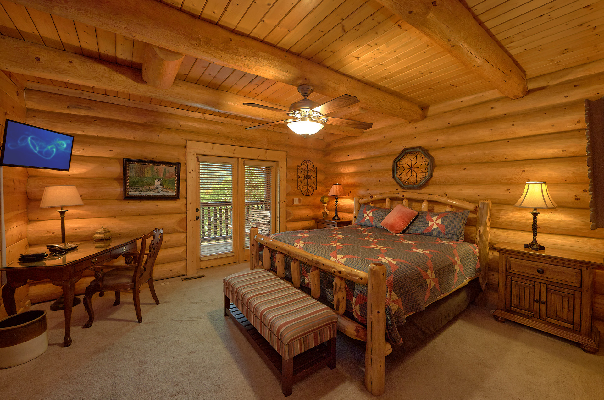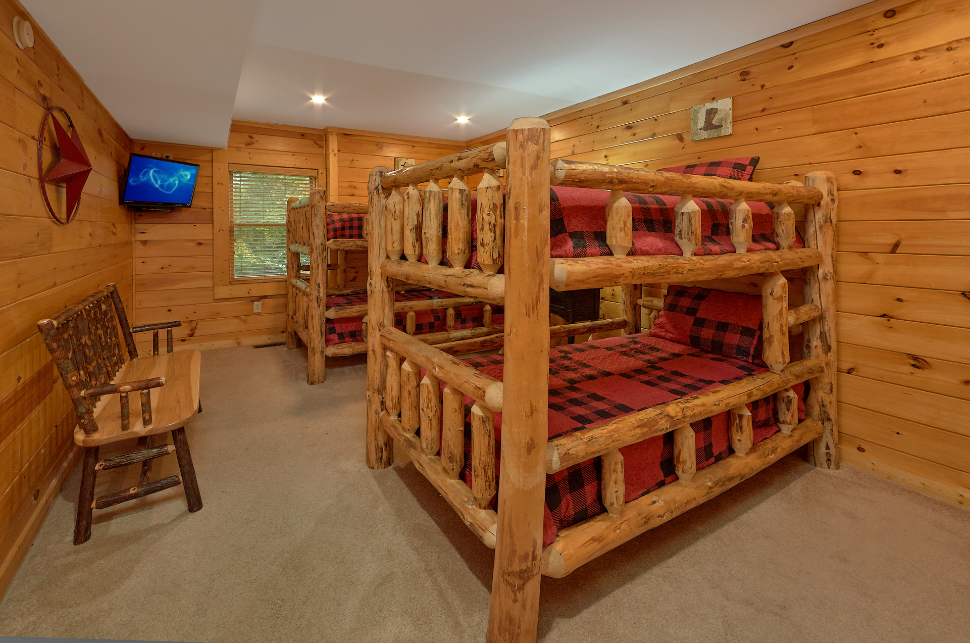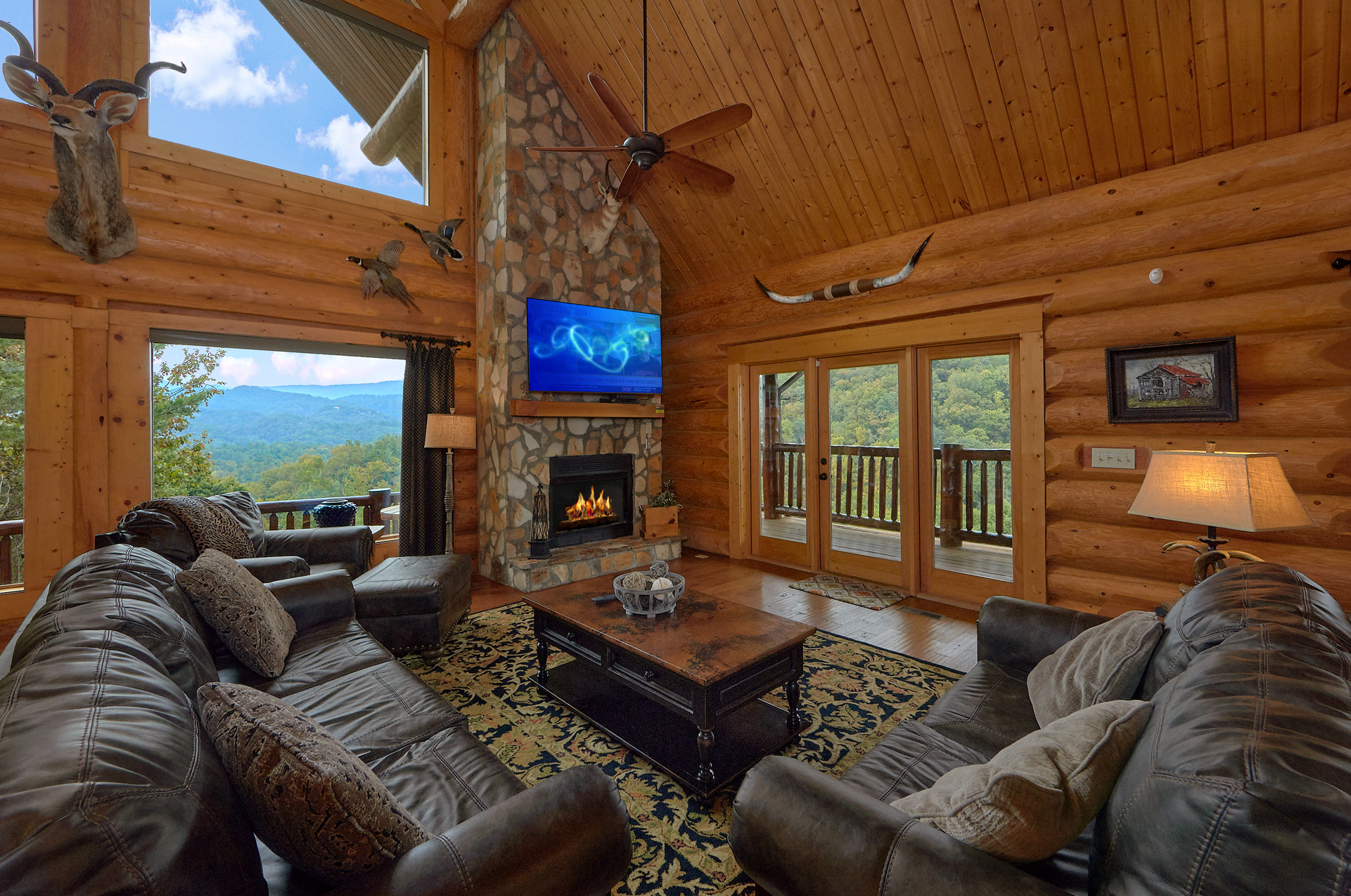 If you're seeking a stunning luxury cabin with panoramic views, look no further than Mountaintop Paradise! This premium 4-bedroom, 3-bath cabin offers breathtaking views of the Smoky Mountains from every floor, greeting you the moment you step inside. Combining mountain charm with high-end comfort, this spacious custom-built log home is perfect for a relaxing getaway from the hustle and bustle of daily life. Located in Cedar Falls, one of Pigeon Forge's most prestigious resorts, this unique cabin offers access to an outdoor pool, children's play area, and a catch-and-release pond. Recently updated with top-tier furnishings and decor, it boasts flat-screen HDTVs in every room, including a massive 80-inch HDTV with surround sound in the theater area! The game room is a gamer's dream, featuring a pool table, shuffle board, 72 FREE PLAY arcade games, a racing car simulator. Just 6 minutes from downtown Pigeon Forge, you'll have easy access to top attractions like Dollywood, Beyond The Lens!, the Hatfield & McCoys Dinner Show, and Dixie Stampede. Plus, you're only a short drive from the entrance to the Great Smoky Mountains National Park. With its impressive features and amenities, Mountaintop Paradise promises your family a royal experience. Don’t wait—make your dream mountain vacation a reality by reserving this spectacular cabin today!
