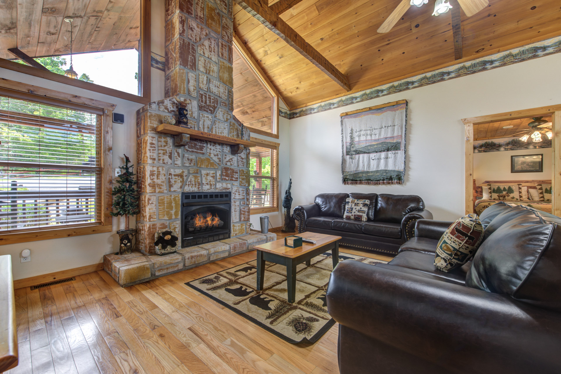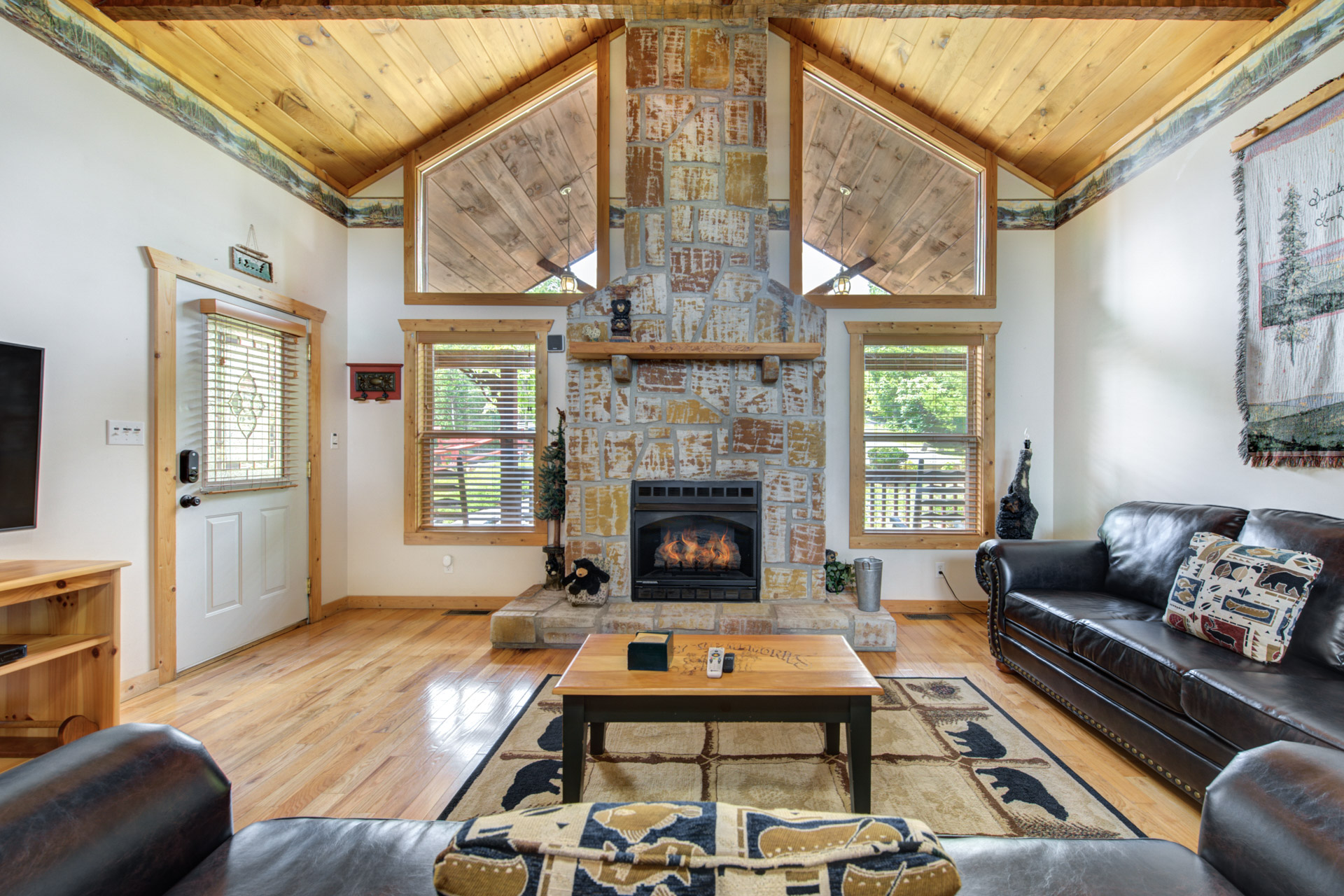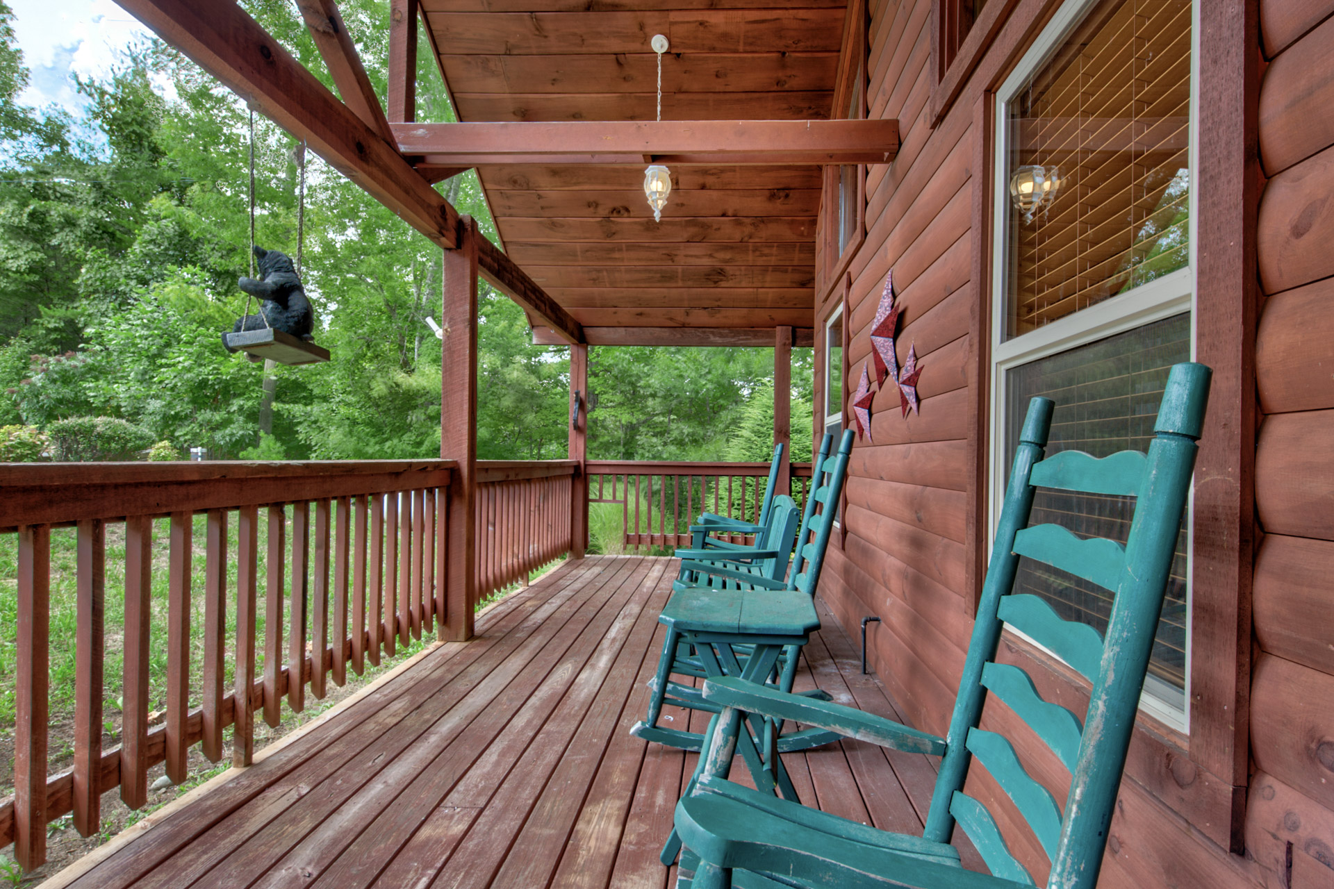 Jeannie Y. - 11/17/2022The cabin was great, comfortable for everyone and highlight was we saw a mama bear with 2 cubs in the side yard! The location was like being in the country but close to main highway and attractions.