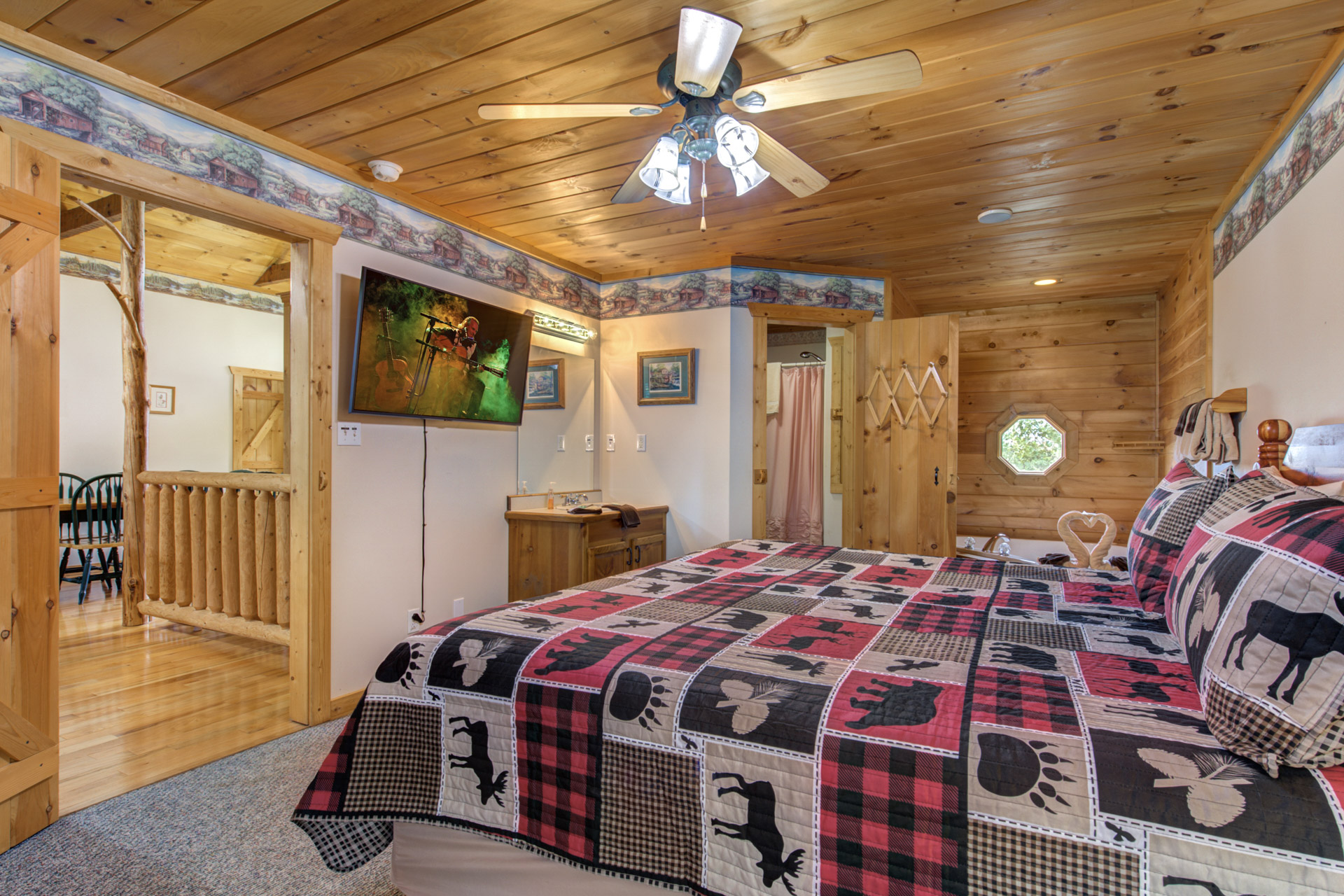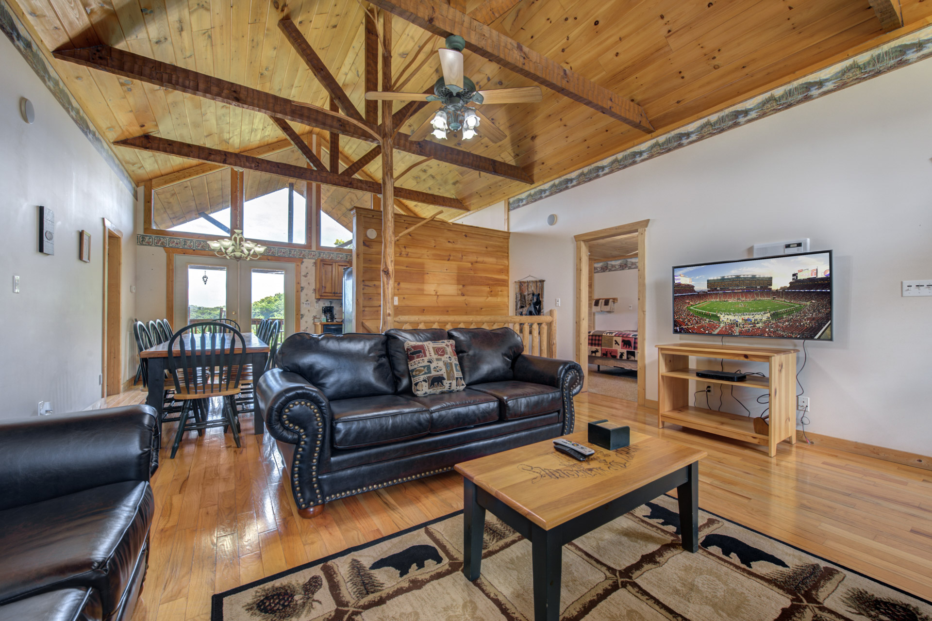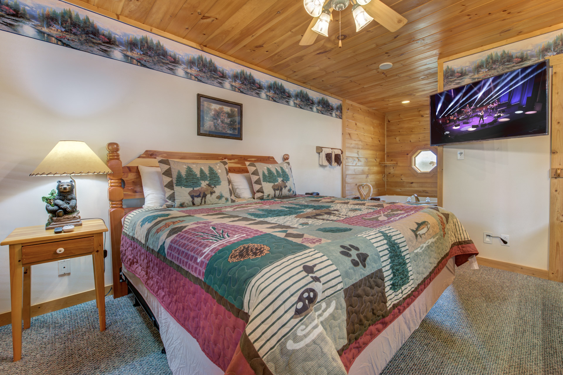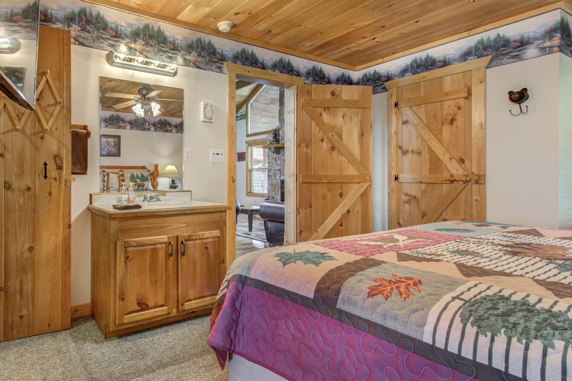 Jeannie Y. - 11/17/2022The cabin was great, comfortable for everyone and highlight was we saw a mama bear with 2 cubs in the side yard! The location was like being in the country but close to main highway and attractions.