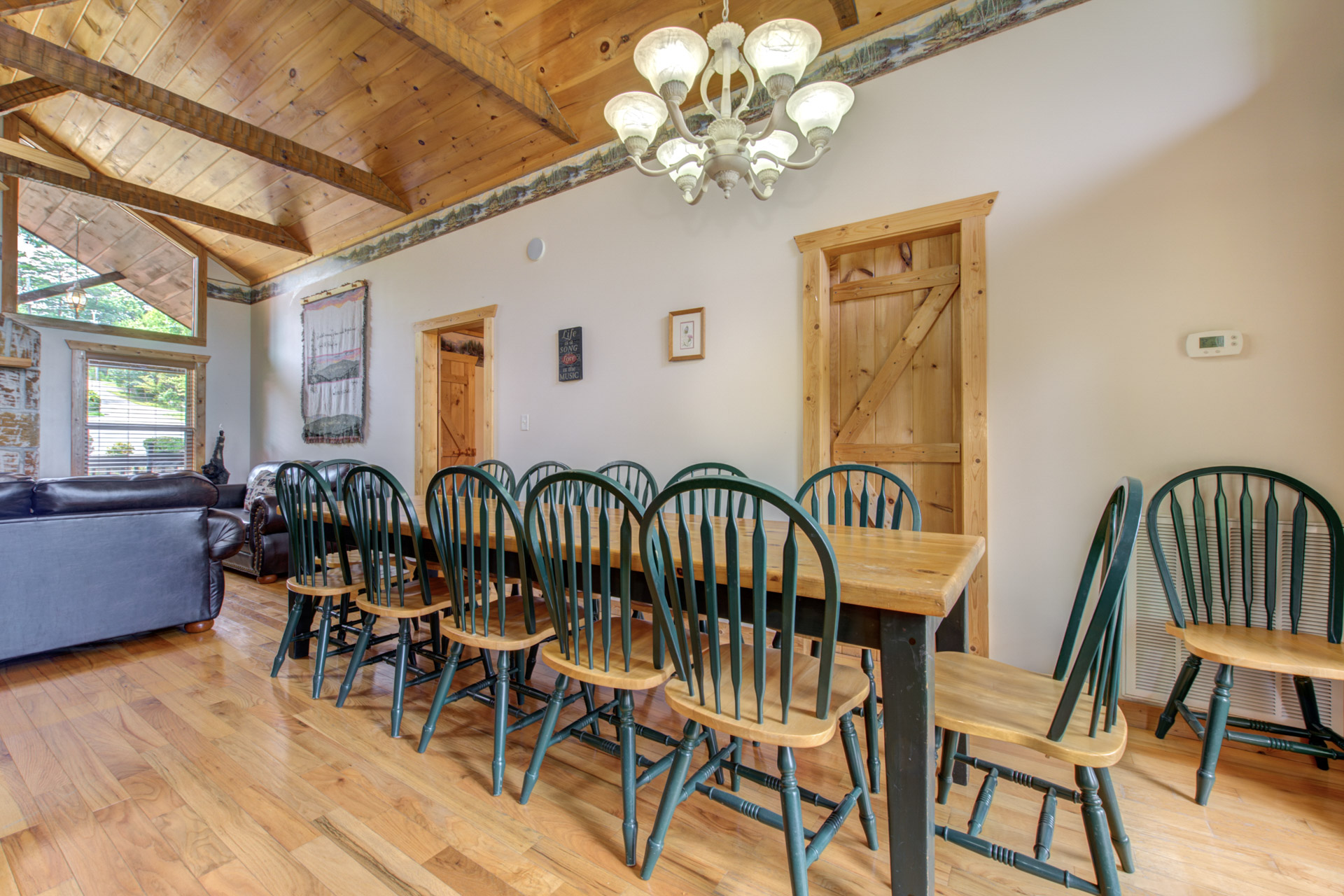 John K. - 08/12/2022Wonderful Cabin accommodations were excellent. The dining room table was perfect for all 10 of us to dine and share. Large Porch was our gathering place after meals, especially dinner for fun and games, then a game of pool and hot tub. We had a small bear visit us every afternoon, what a treat!