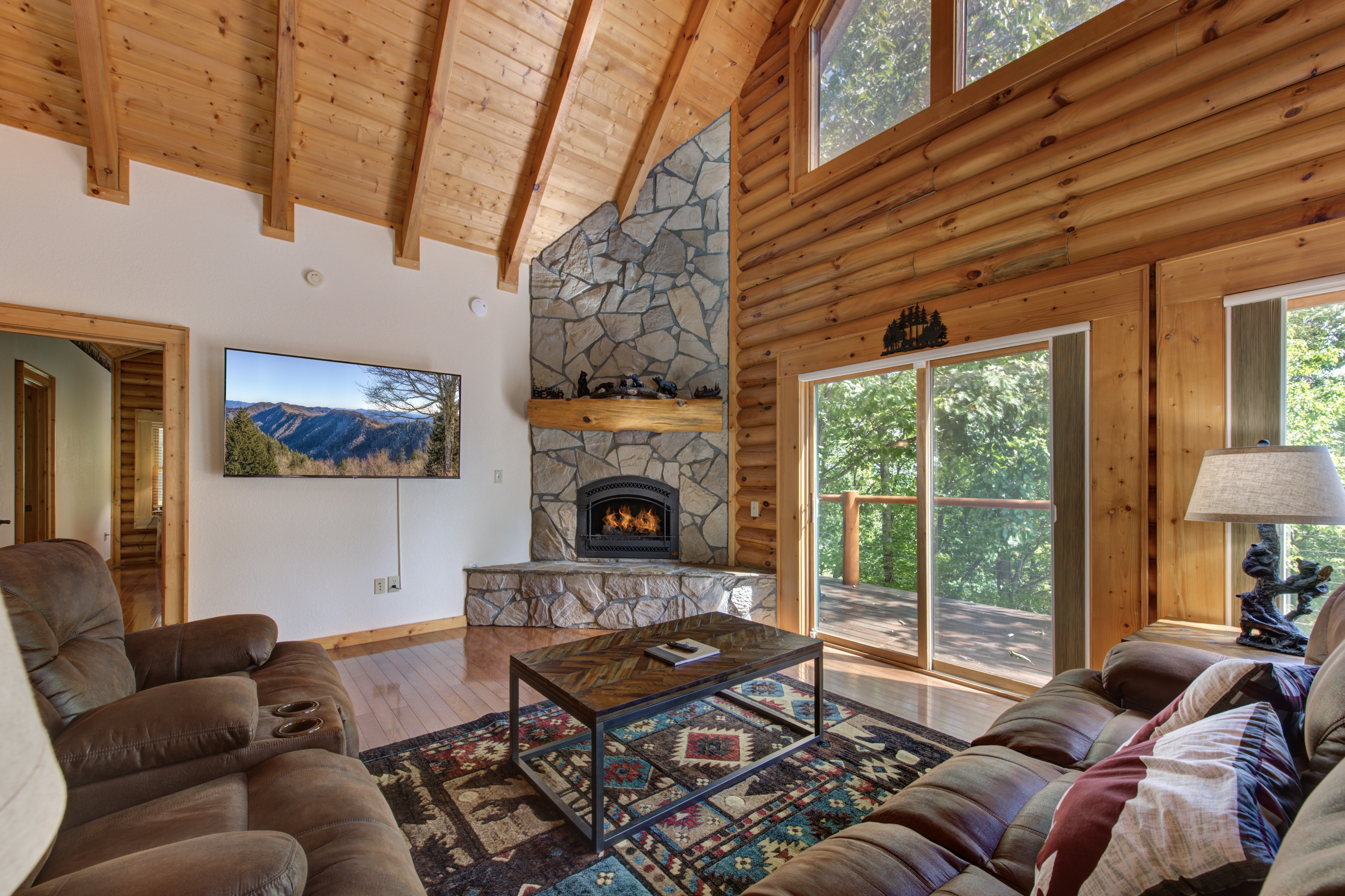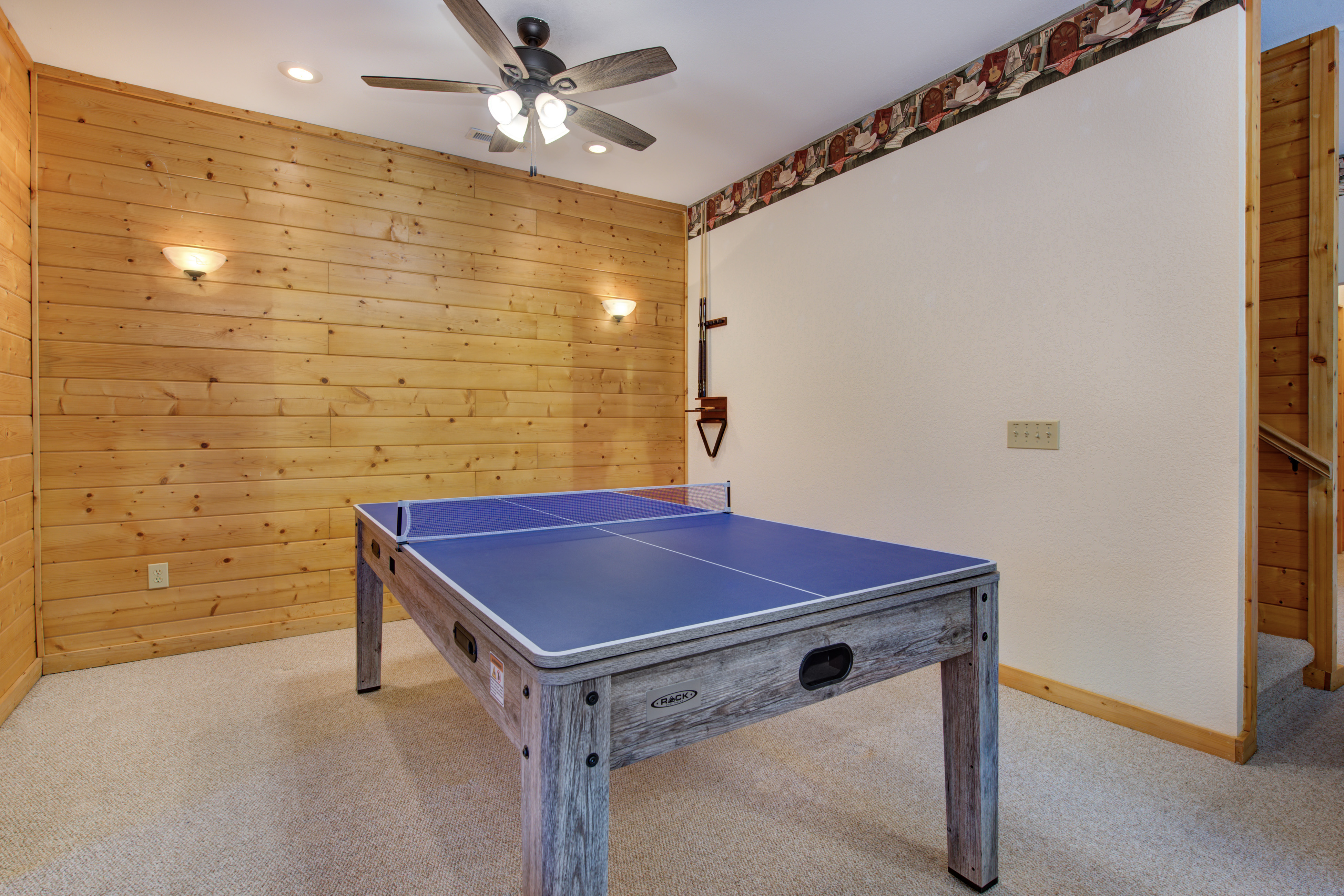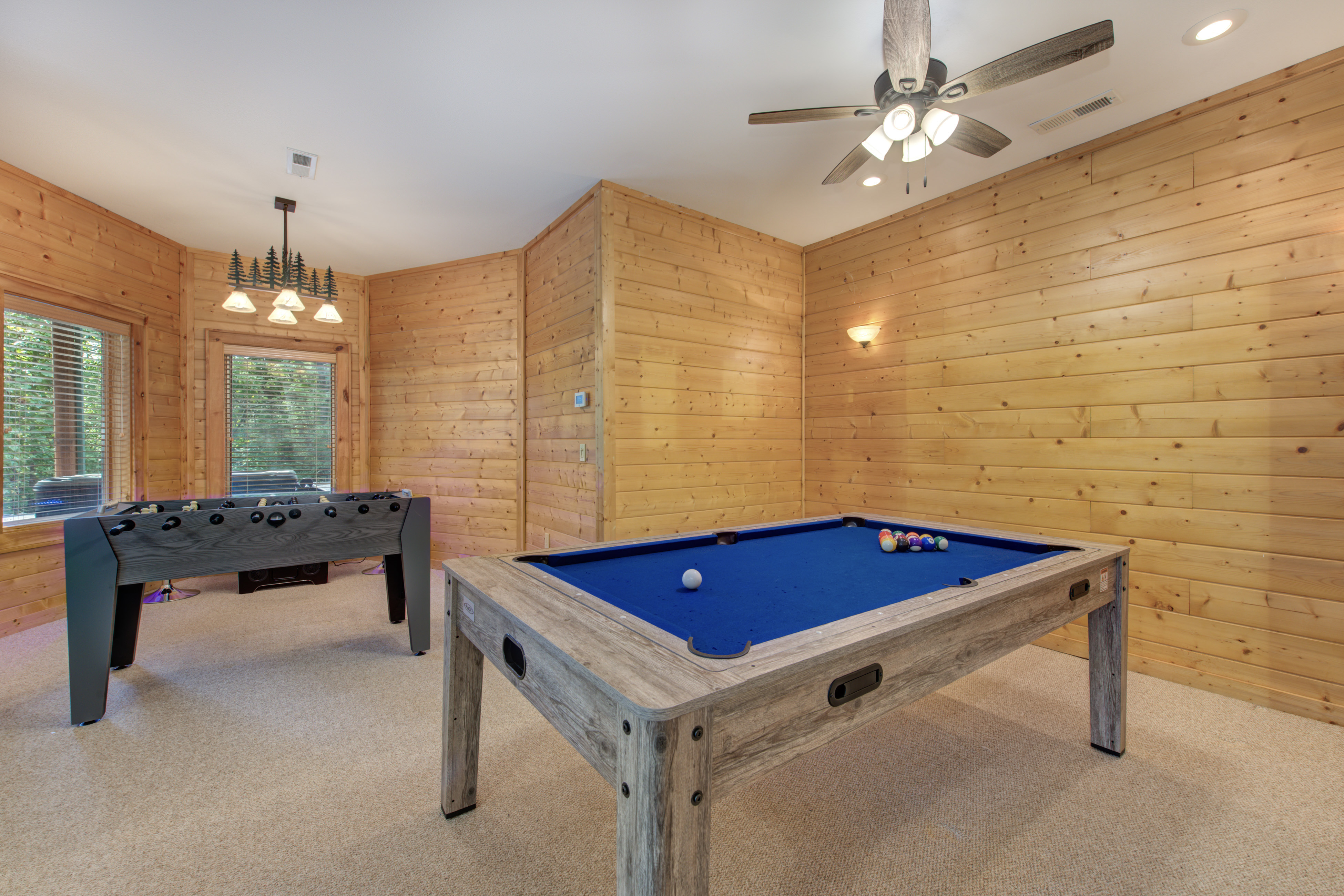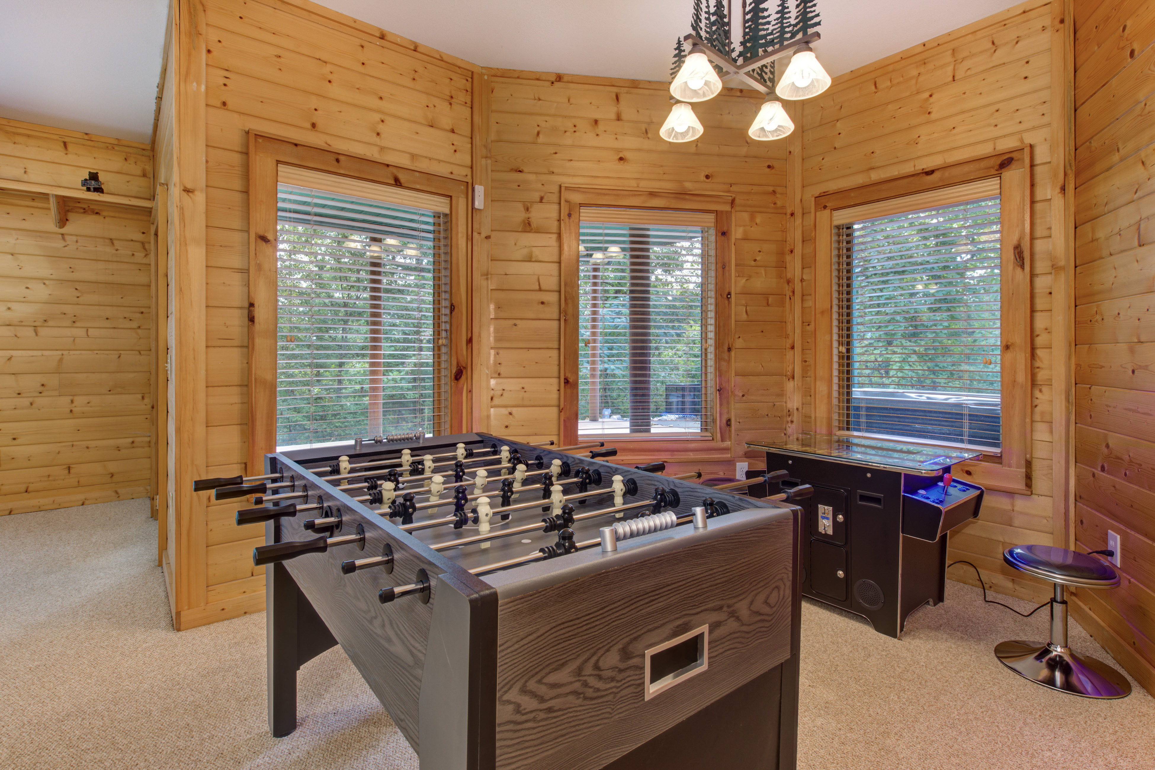 Surrounded by the stunning scenery of the Smoky Mountains, this inviting cabin offers the perfect place to relax and recharge. Just 10–15 minutes from the Pigeon Forge Parkway, you’ll enjoy both the quiet of the mountains and the convenience of being close to town. Step onto the deck and take in the sights and sounds of the forest, soak in the soothing hot tub under the trees, or gather around the grill for a laid-back evening surrounded by nature. Inside, rustic wood interiors and cozy furnishings create a warm, relaxing atmosphere where you can unwind after a day of exploring. With a full kitchen, spacious living area, and plenty of games—including air hockey, foosball, and ping pong—you’ll find comfort and fun for everyone. Whether you’re here to experience the mountain views, enjoy the peaceful setting, or simply slow down and reconnect, this cabin is the perfect Smoky Mountain escape.