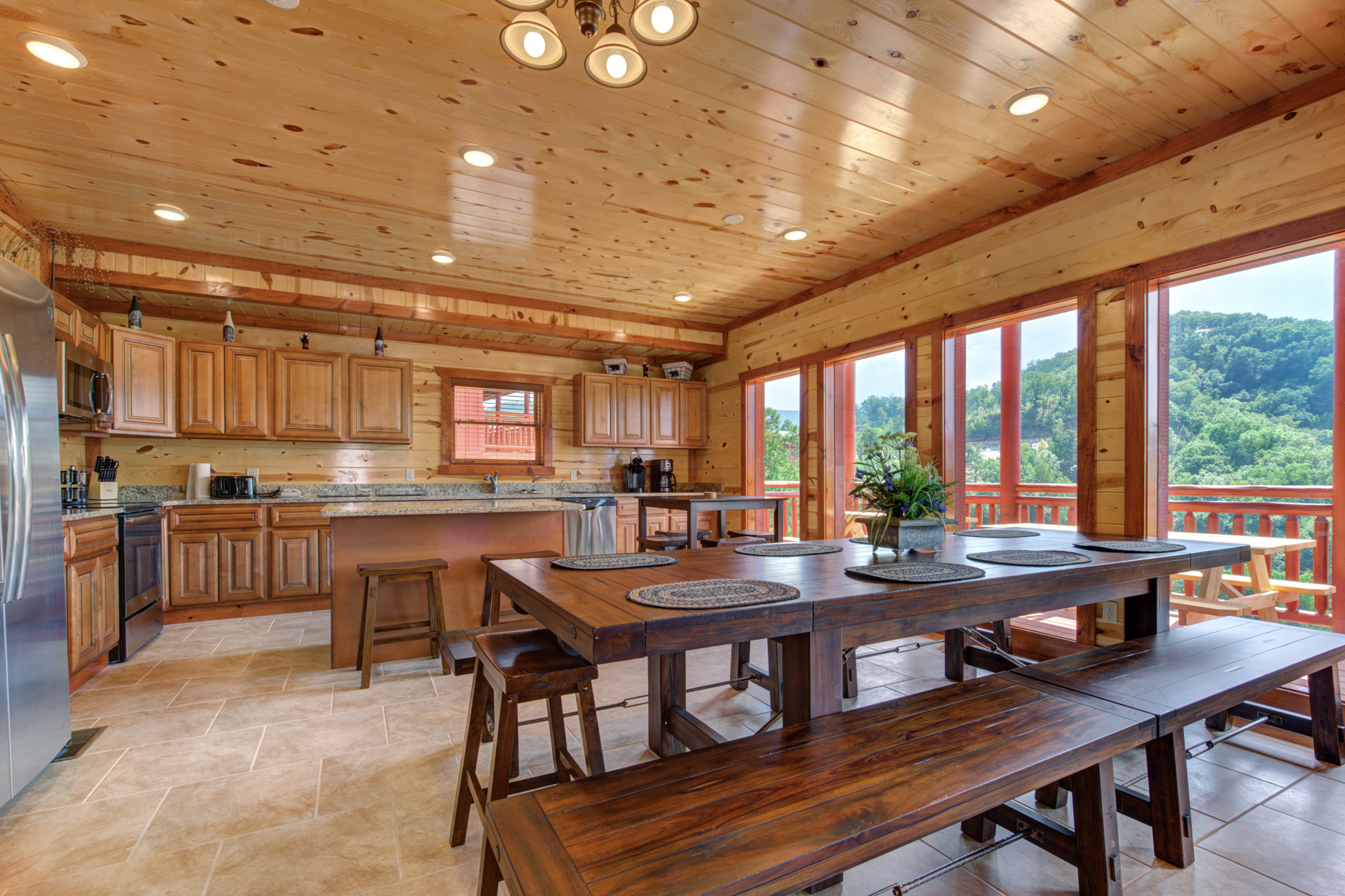 Benjamin W. - 06/22/2022Great stay with kids of all ages. The property was very clean. The kitchen was fully stocked. We weren't sure what to expect so we brought two instant pots and some other cooking utensils. We were surprised to see that the kitchen had an instant pot, a crock pot, two toasters, a flat top electric griddle, 12 cup coffee pot, and a keurig...these are just some of the items available. It would be nice if they had pictures of all of these items with the pics of the property so we knew ahead of time that these items were available and could have planned a little better. The knives aren't the best but you can make it work. I would suggest bringing your own chefs knife if you plan on cooking/prepping a lot. During our stay we wanted to make sure we had breakfast and dinner at the cabin together as a family and to save money. We only ate out for lunch so we cooked a lot and had a lot of fruits/veggies to prep; we made the knives work. We were also pleasantly surprised to see there was a karaoke machine attached to the home theater. Had lots of fun! Worth a look!!!