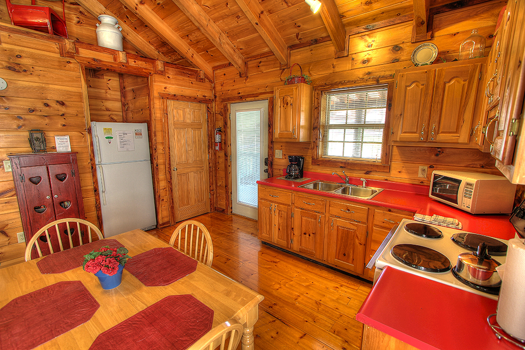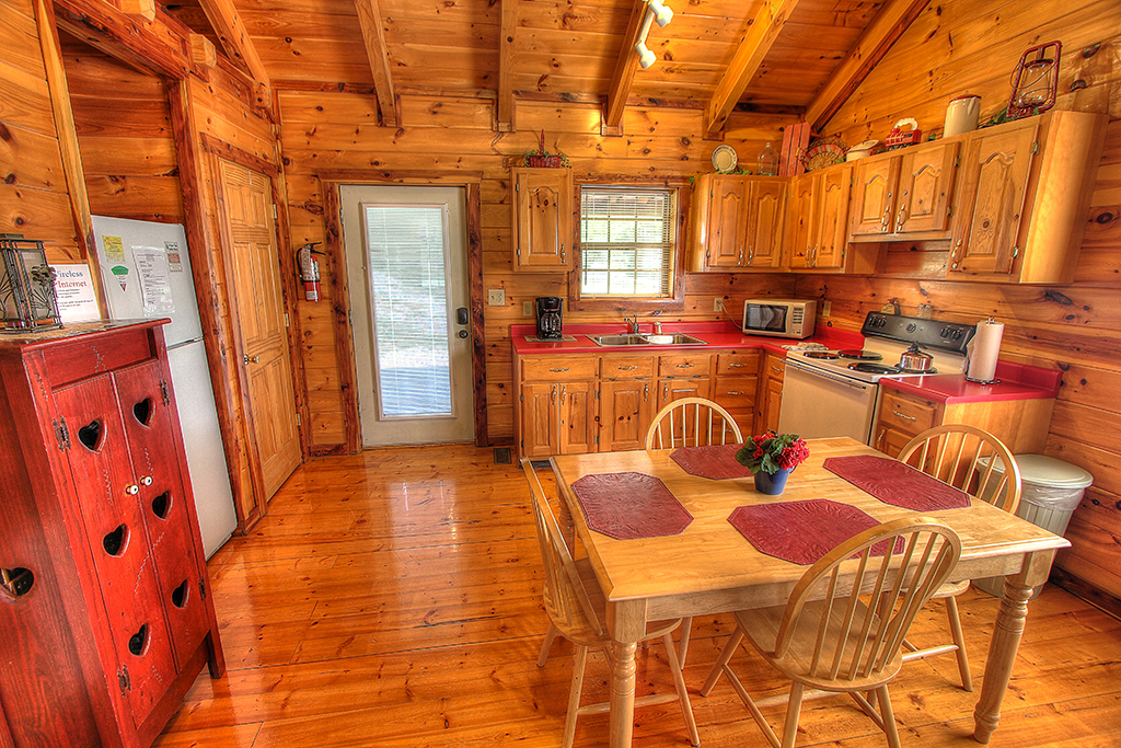 Located in Pigeon Forge, Tennessee, just outside the Great Smoky Mountains and Gatlinburg, the Sweetheart's Retreat one-bedroom cabin is the perfect log cabin for honeymooners or those sweethearts looking for the ideal romantic cabin. As you enter this romantic retreat your eyes immediately focus on the luxurious furnishings and the majestic stacked stone fireplace. This log cabin has privacy and great views but is close to Pigeon Forge and Gatlinburg. The fully equipped kitchen is ready for cooking. Bring candles and champagne for relaxing in the heart shaped Jacuzzi or enjoying the great outdoors in your hot tub. With luxurious furnishings and rustic charm you will not be disappointed with Sweetheart's Retreat. SweetHearts Retreat has Access to a Fishing Pond.