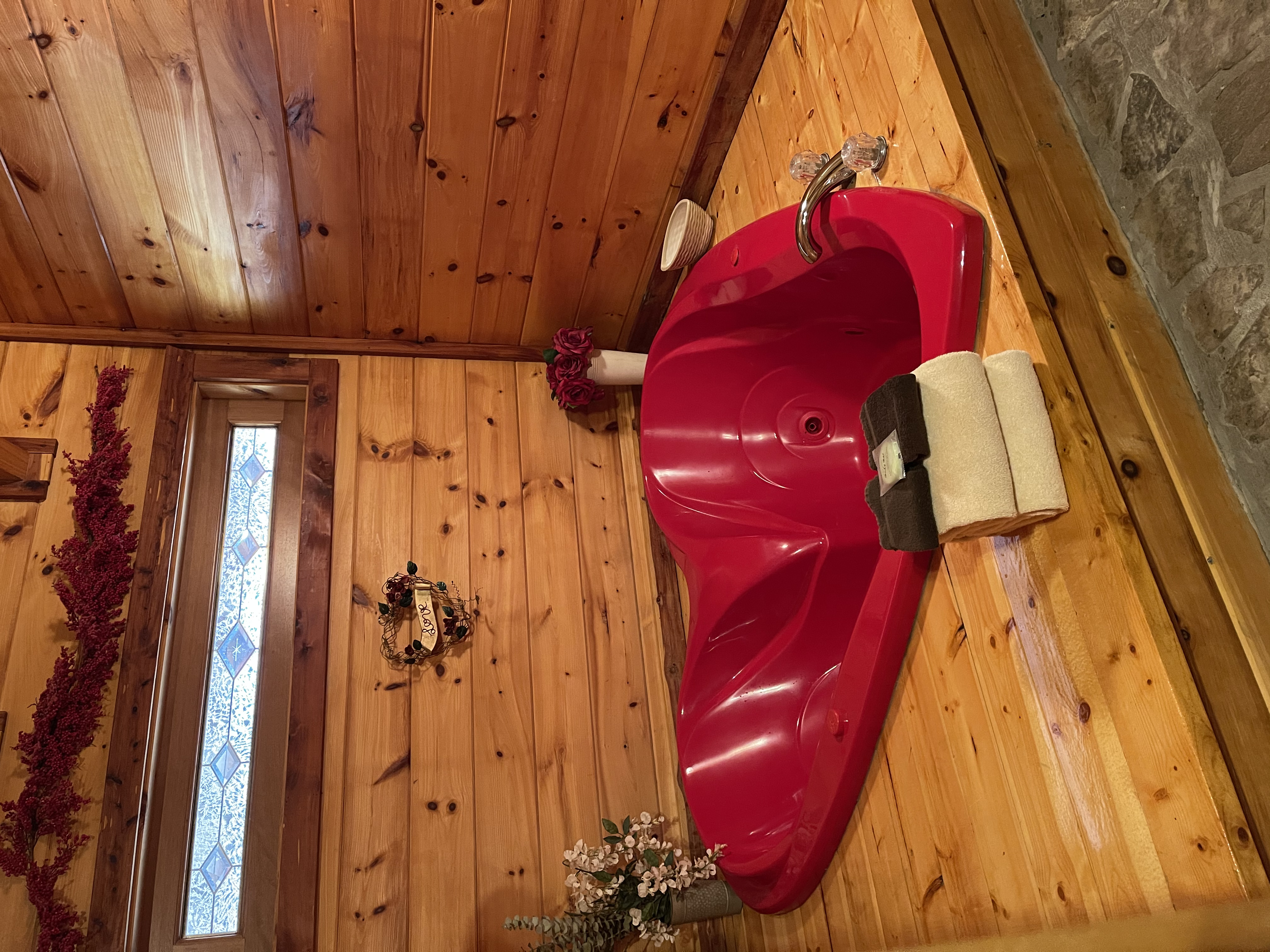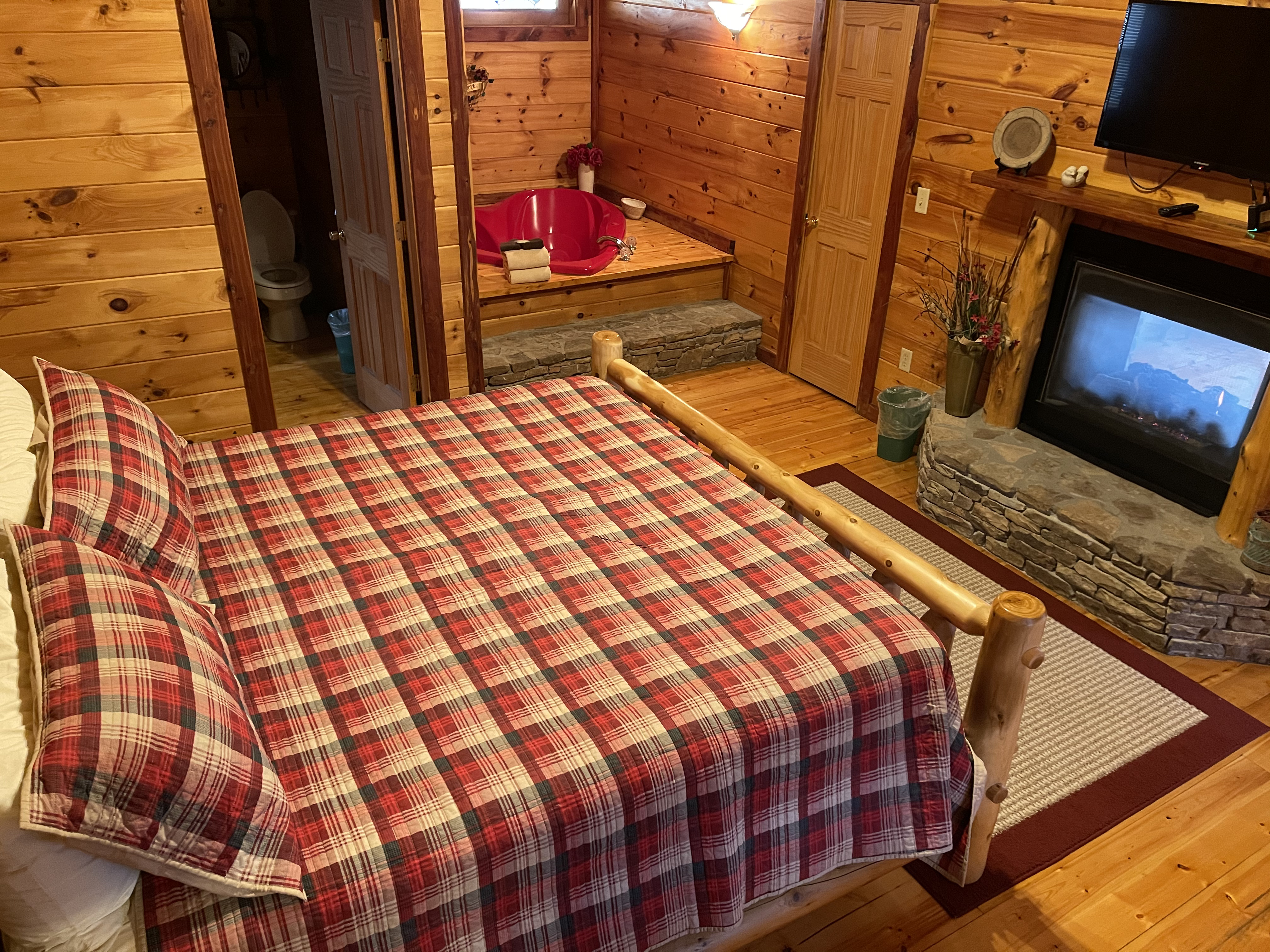 Wes H. - 03/01/2024We were delighted to stay at the sweetheart retreat. It was great to walk into an super clean environment that was a perfect getaway for a couple. The screened in porch with the hot tub was a great way to spend a night. The heart shaped jacuzzi was such a nice romantic touch. We enjoyed the fireplace and had a great time being at this cabin. Close to everything. This cabin had a stove, microwave and all the things you would need for a few meals. We will be back!