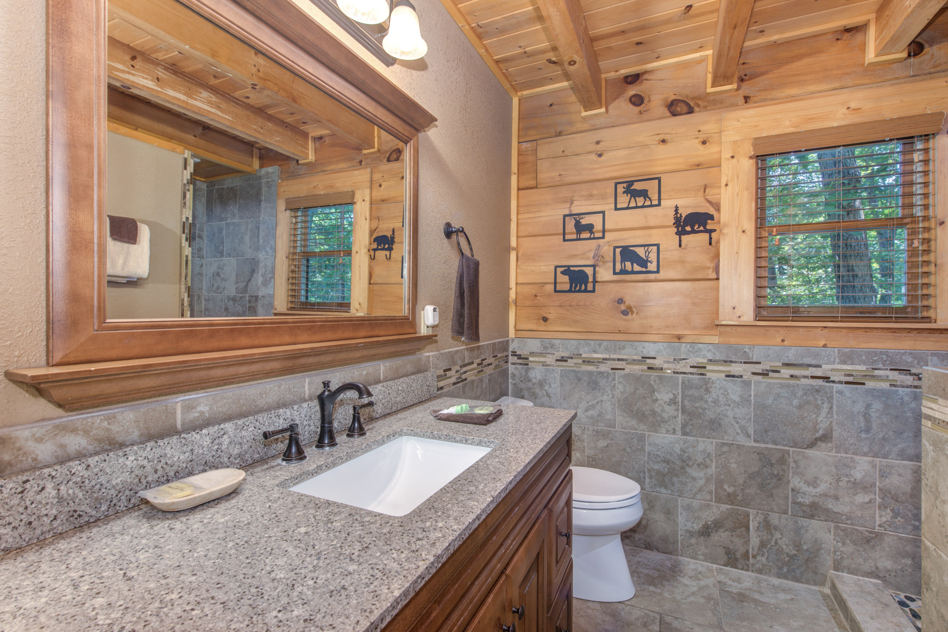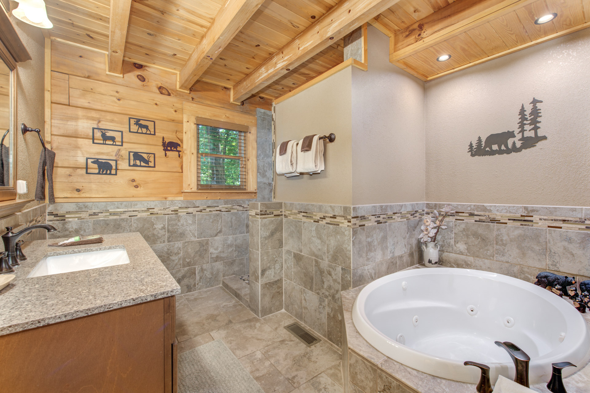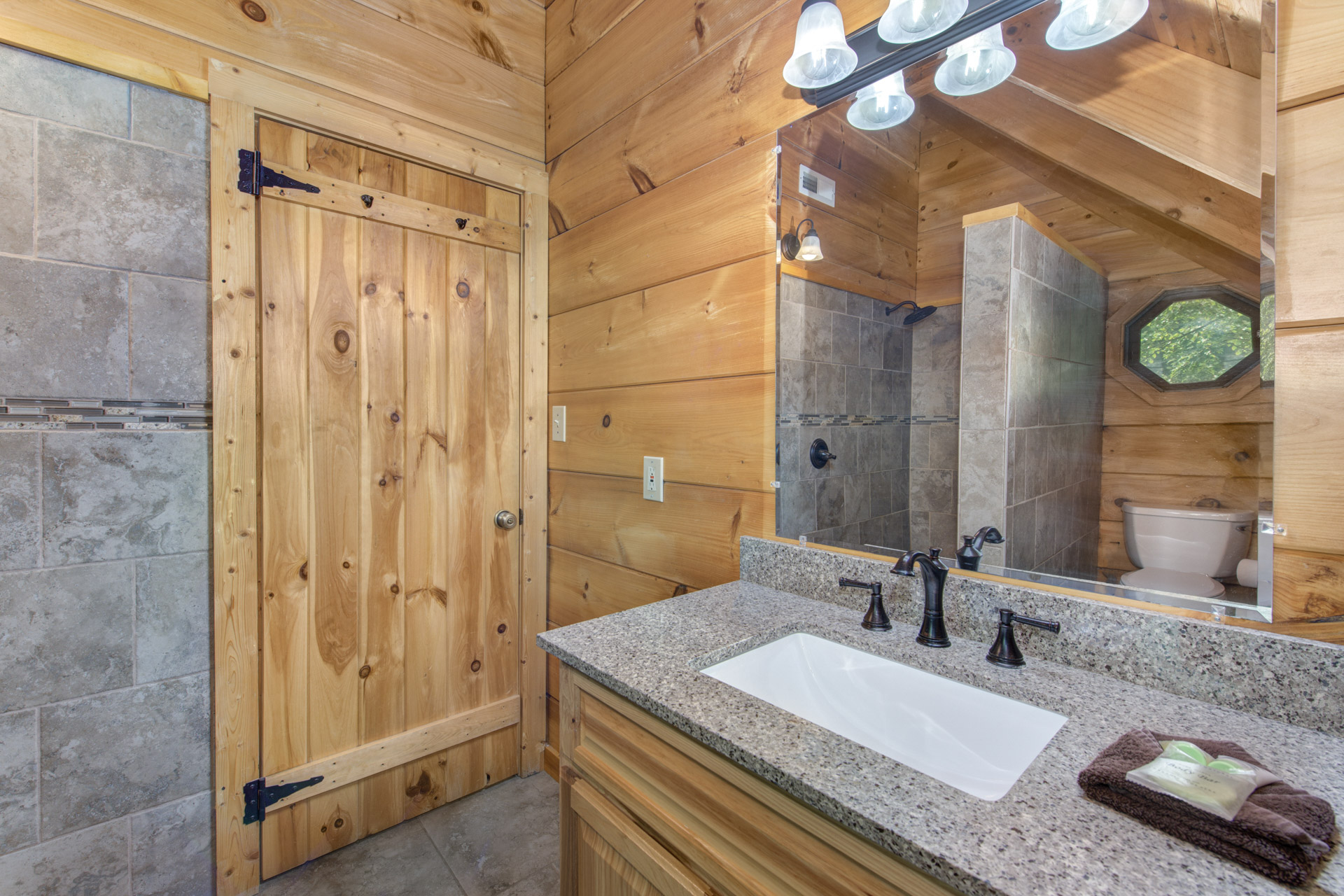 Andrea S - 03/10/2022The updated bathrooms (amazing tile work and sinks/countertops), 4 large smart TVs and updated kitchen(new appliances and beautiful tile and well equipped) made this my best cabin experience yet. Beds were comfortable and hot tub was just right!