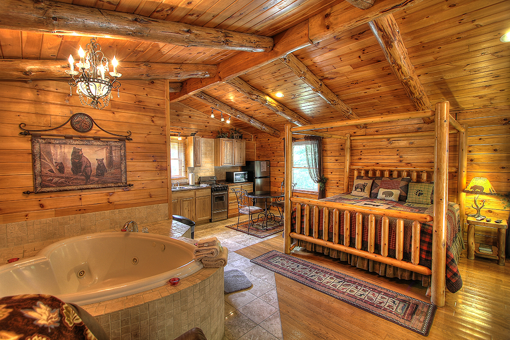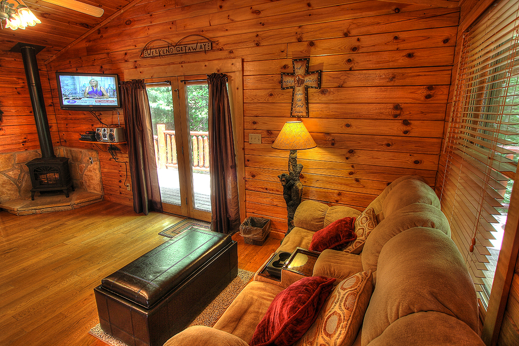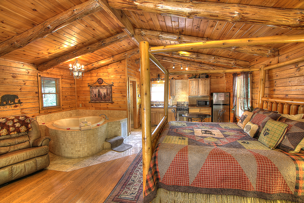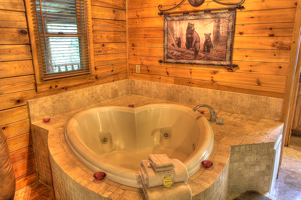 Located in Pigeon Forge, Tennessee, just outside the Great Smoky Mountains and Gatlinburg, the Weekend Runaway, one-bedroom cabin is the perfect log cabin for honeymooners or those sweethearts looking for the ideal romantic cabin. As you enter this cozy retreat your eyes immediately focus on the over-sized heart-shaped Jacuzzi surrounded by marble, very elegant. This log cabin has a vaulted ceiling, king-sized bed and living area with stone hearth accented by a gas burning fireplace. The fully equipped kitchen is ready for cooking your favorite meals with ease. Flat Screen television with dvd player to add fun to your Smoky Mountain Getaway. Best of all, just outside on the very private covered porch awaits a bubbly hot tub, made for 2. This log cabin is located in the mountains, just 5 minutes from Action Packed Pigeon Forge. Weekend Runaway is the perfect Pigeon Forge Cabin - Another great Cabin offered by Maple Ridge Cabin Rentals. There is potential for noise in the area.